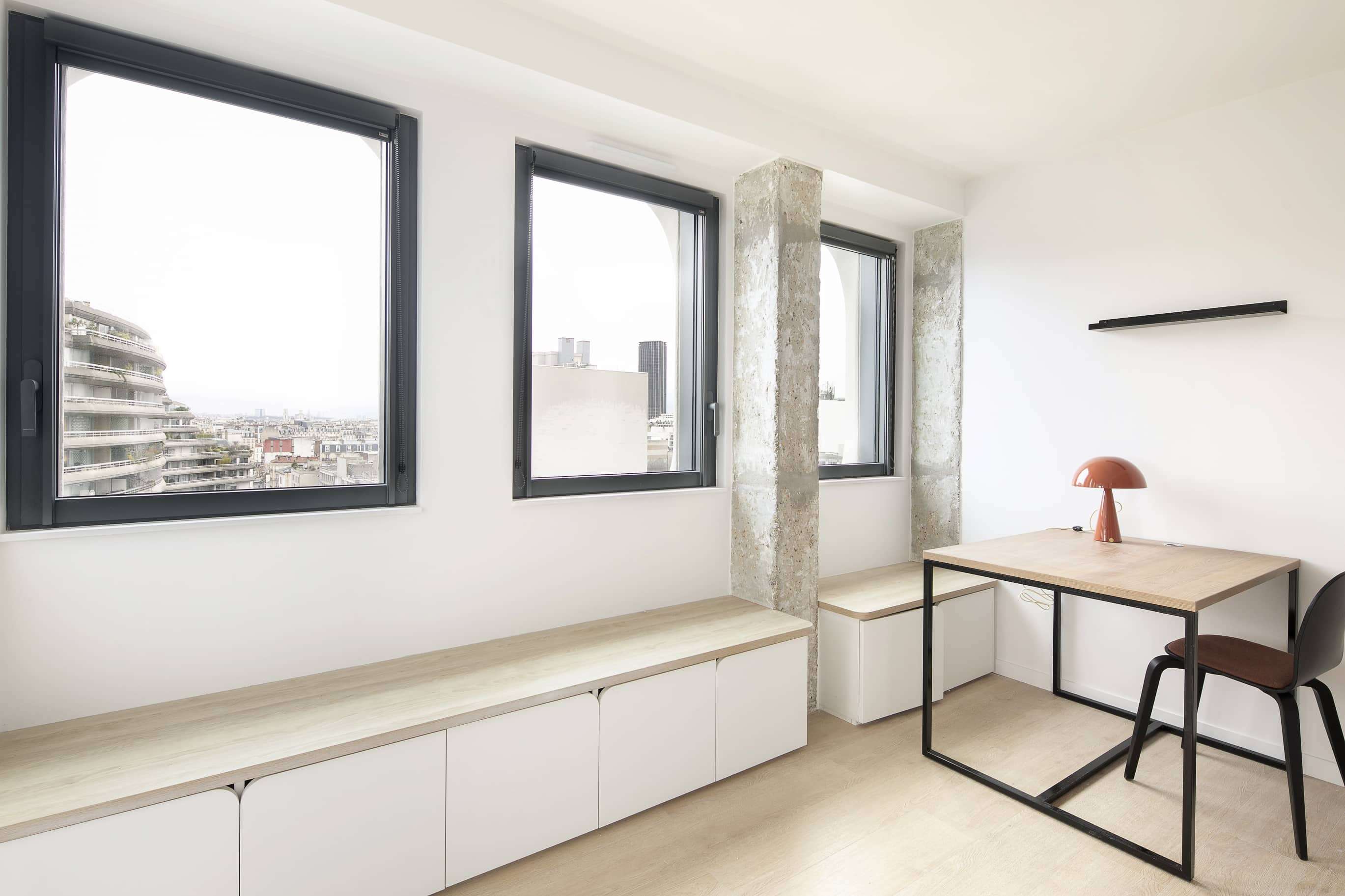 Bienvenue à La Résidence, un espace de vie dynamique et moderne conçu pour la vie en coliving. Avec ses 3284m2 répartis sur dix étages, cette résidence offre quatre-vingt-seize logements privés et des espaces communs pensés pour le confort et la convivialité. Profitez de salons partagés pour vous détendre, de cuisines équipées pour préparer vos repas, d'une buanderie pratique, d'une salle de fitness pour rester en forme et d'une magnifique terrasse de plus de 100m2 au dernier étage avec une vue imprenable.