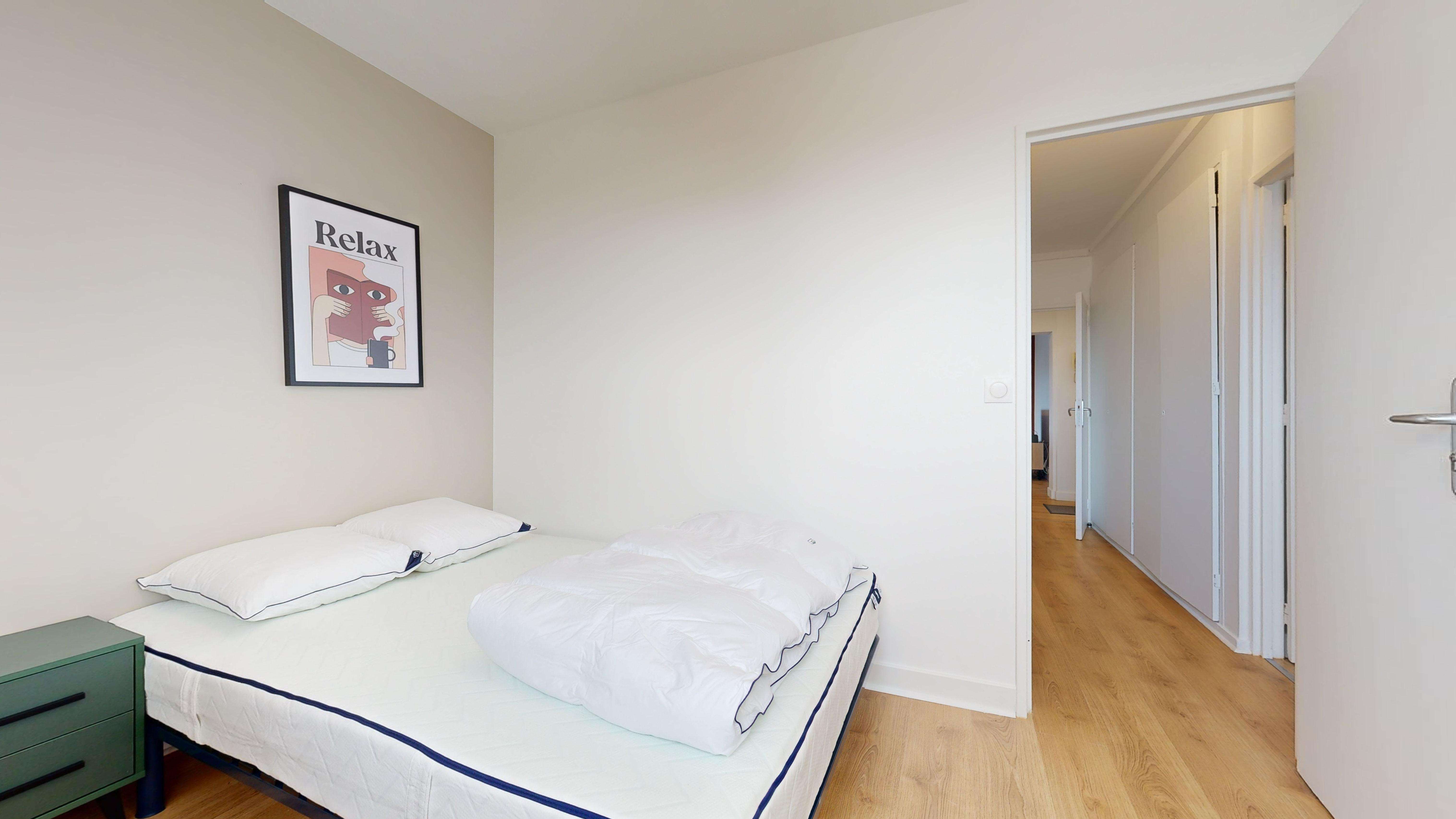 Votre chambre privée est un havre de paix avec tout le nécessaire : un lit confortable, un bureau pour travailler et des rangements pour vos affaires. La salle de bain attenante est moderne et pratique avec une douche à l'italienne.