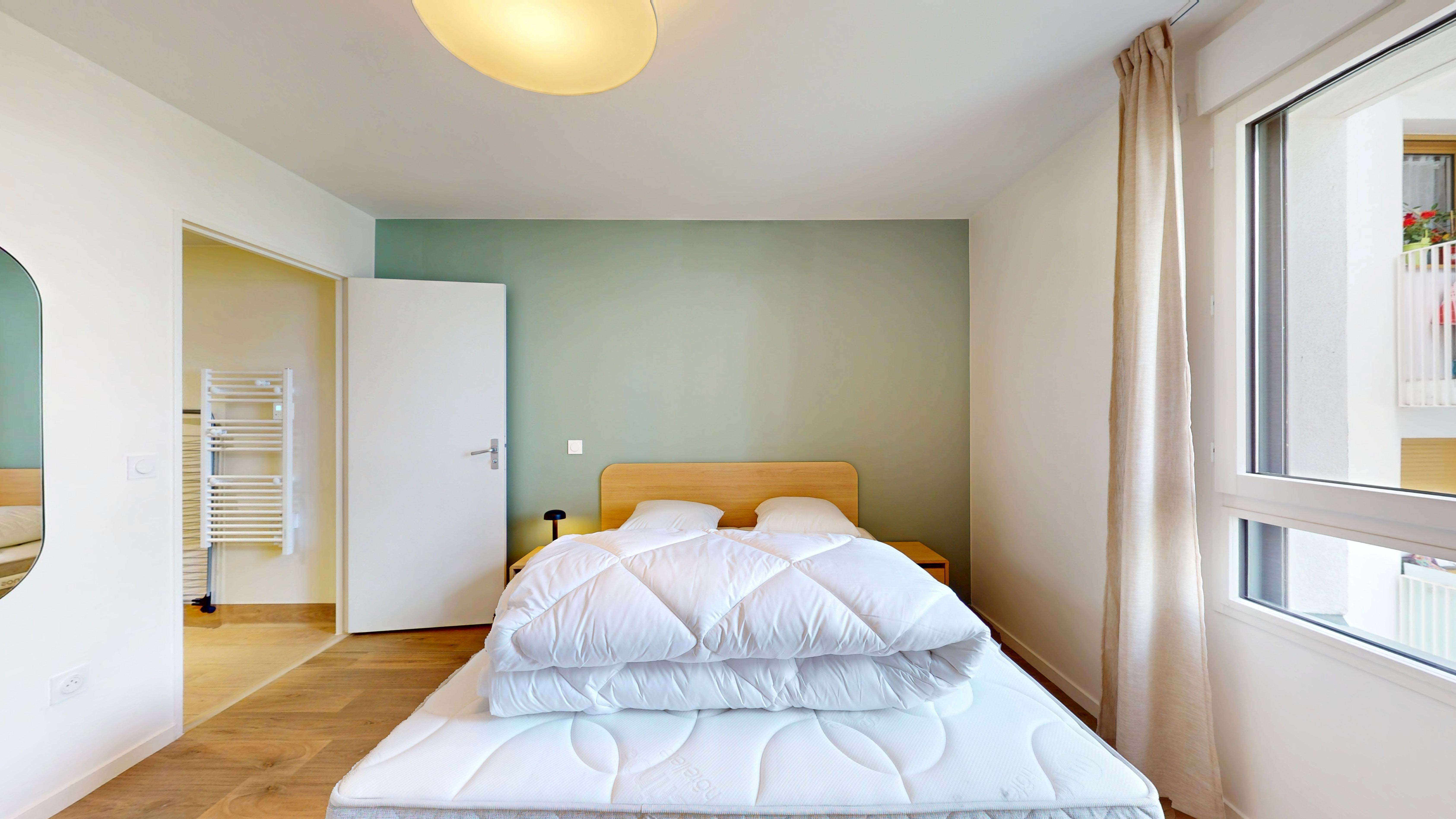 Découvrez cet appartement confortable, parfait pour deux personnes. Avec ses 42.3 m² bien agencés, vous profiterez d'une chambre séparée avec un lit double douillet et une armoire pour ranger vos affaires. La salle de bain privative est équipée d'une douche moderne, d'un lavabo et de toilettes. La cuisine ouverte sur le salon offre tout ce dont vous avez besoin pour préparer vos repas : plaques de cuisson, micro-ondes et réfrigérateur. Le salon est accueillant avec son canapé-lit pratique, une télévision pour vos soirées détente et une table avec des chaises pour vos repas.