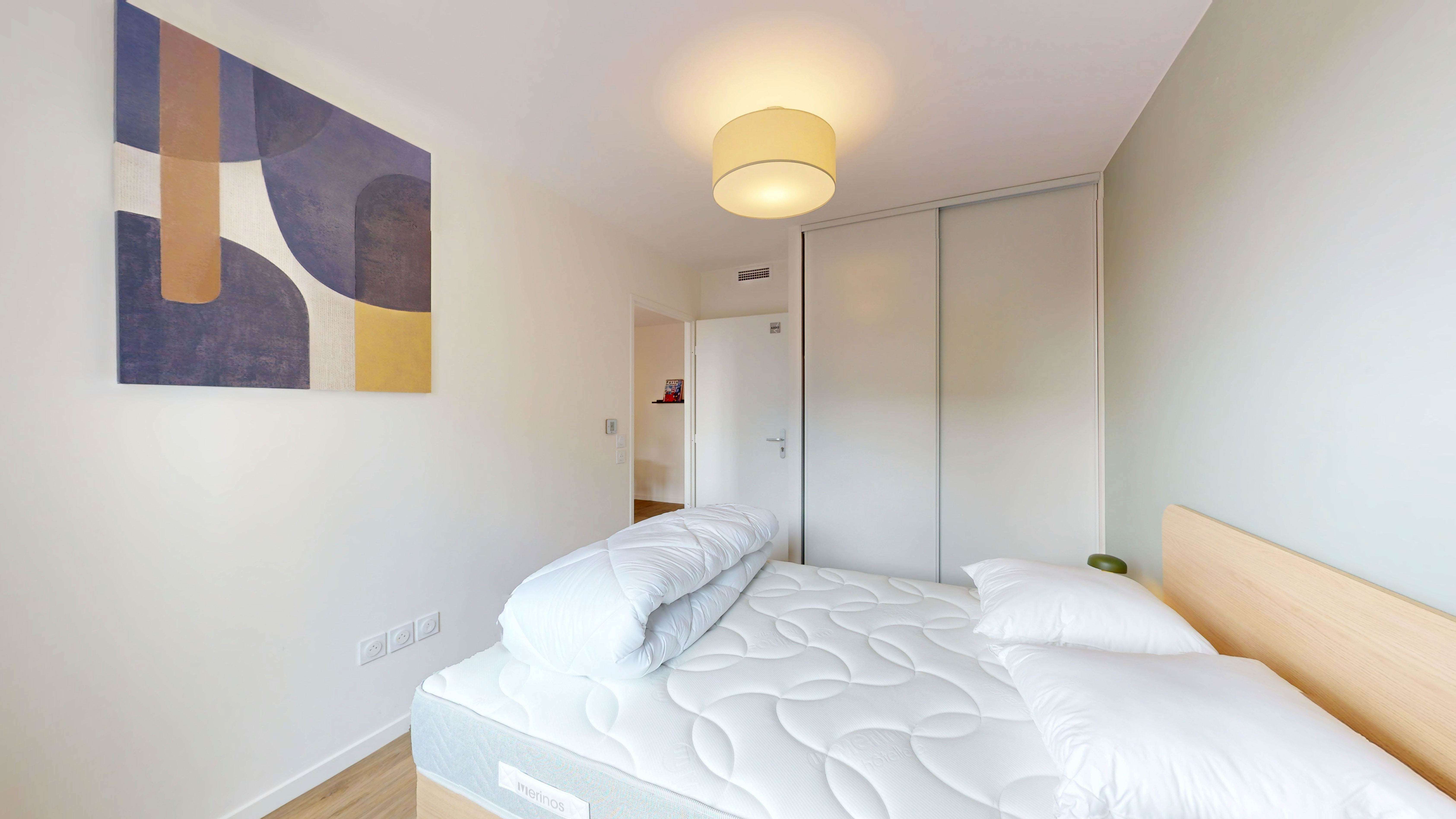 Votre chambre personnelle est un espace confortable et bien aménagé. Elle comprend un lit douillet, un bureau pour étudier ou travailler et suffisamment de rangements pour toutes vos affaires. La salle de bain attenante est moderne et privée, garantissant votre intimité.