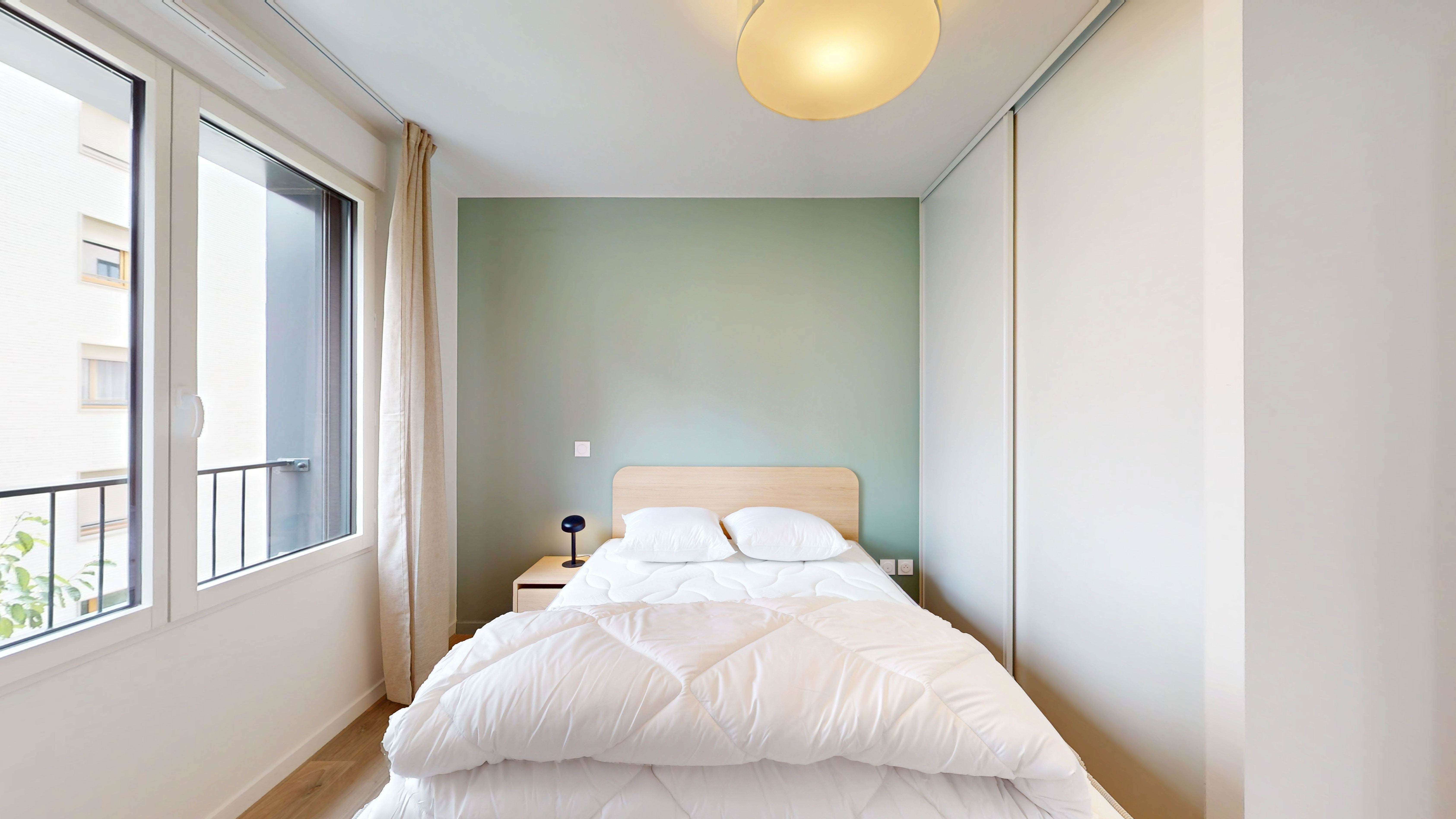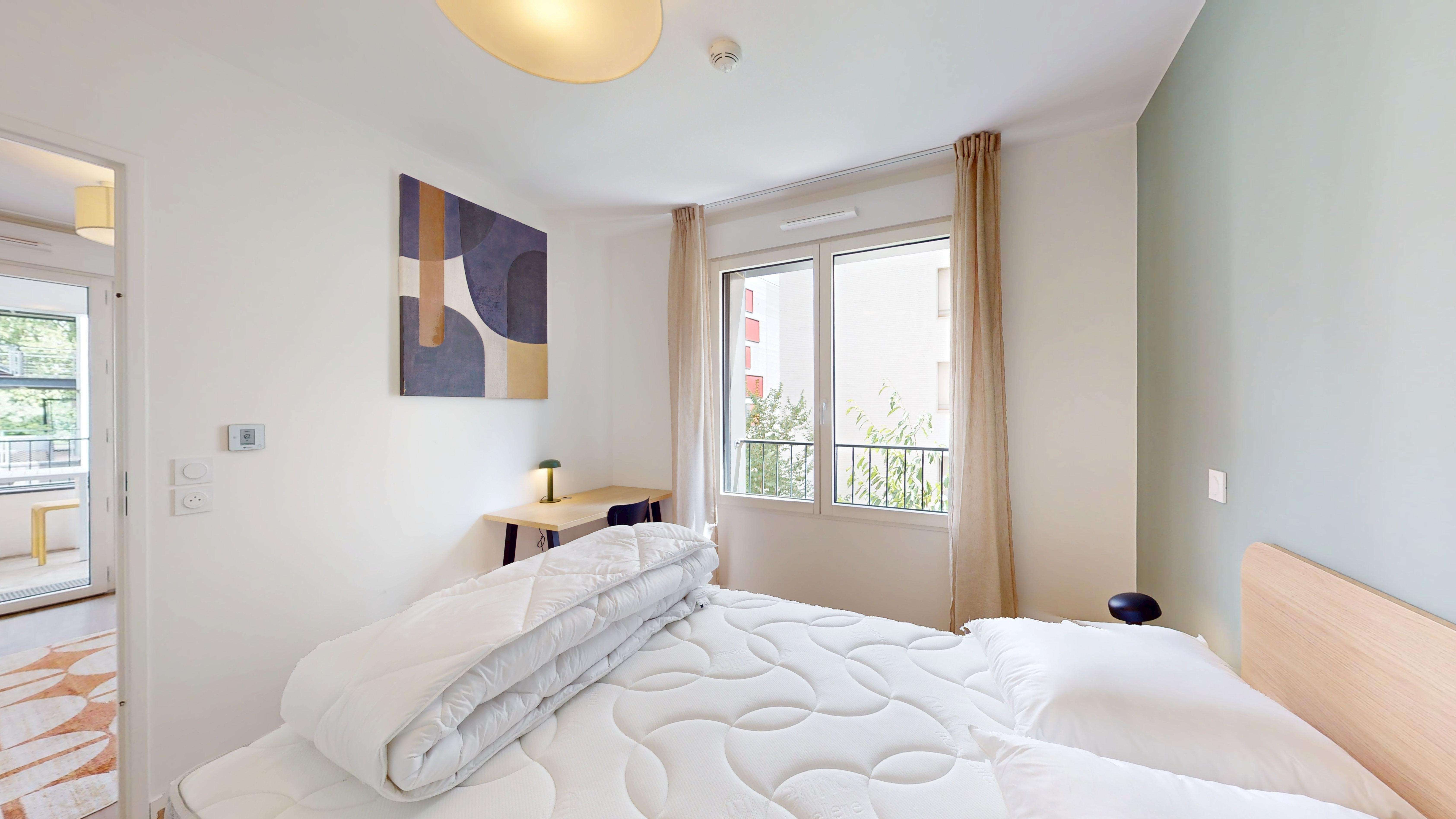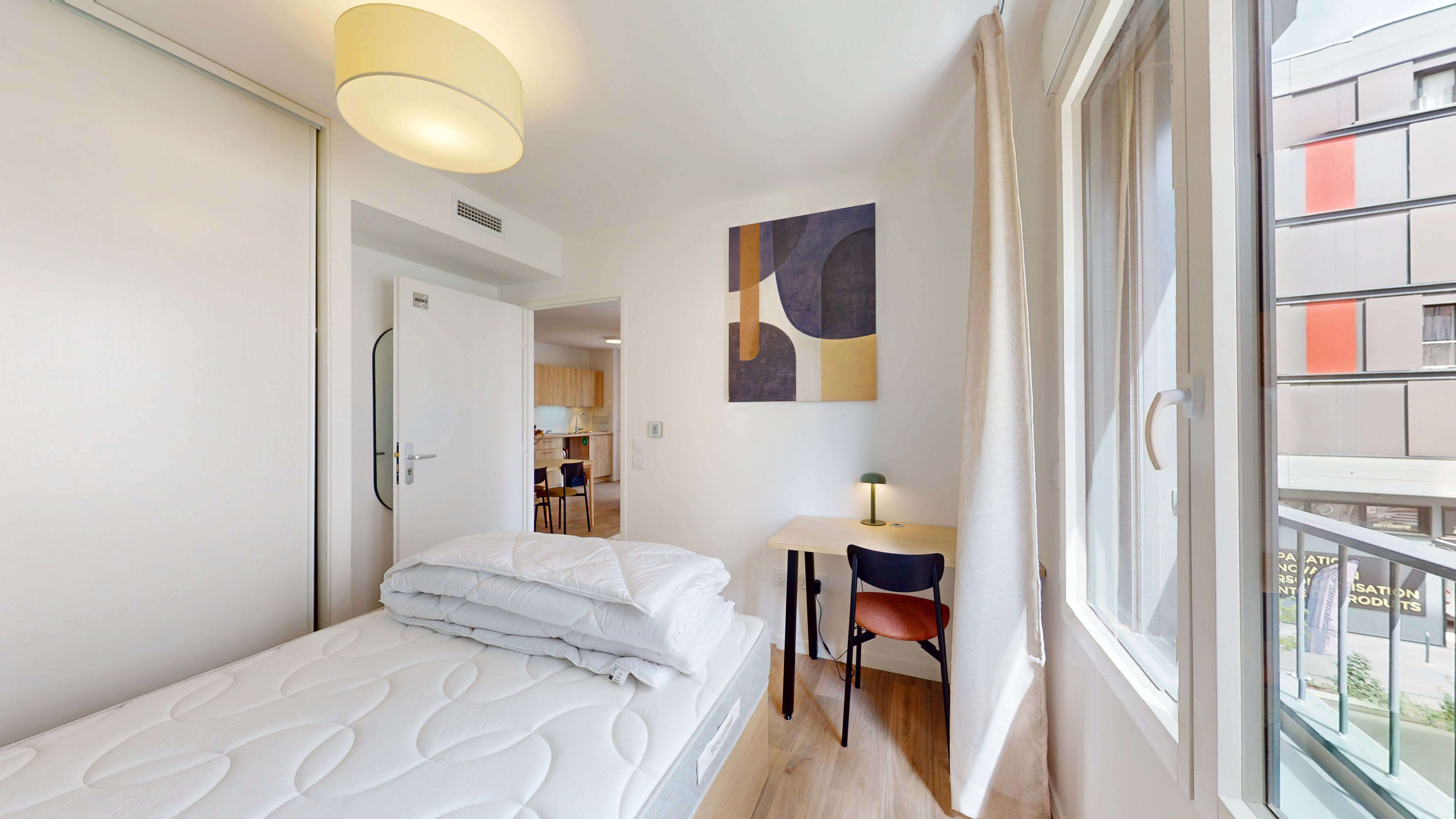 Votre chambre personnelle est un espace confortable et bien aménagé. Elle comprend un lit douillet, un bureau pour travailler et des rangements pour vos affaires. La salle de bain privative est moderne et pratique avec une douche propre et rafraîchissante.