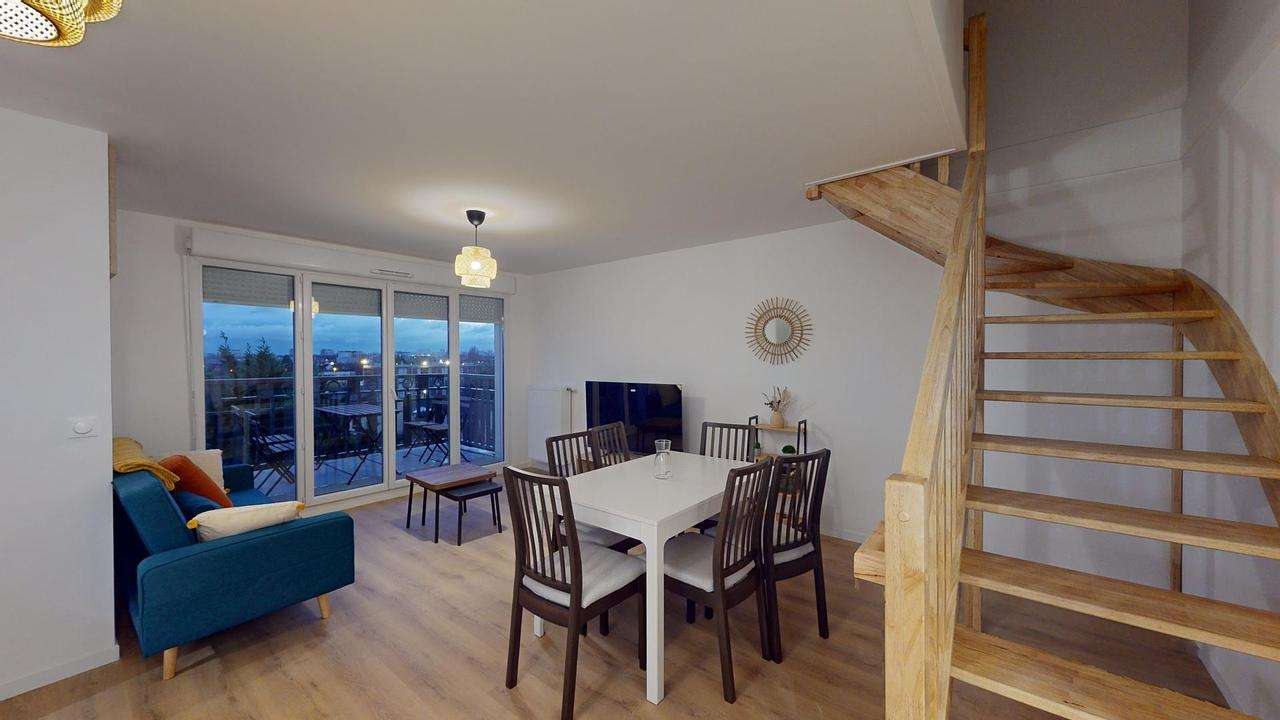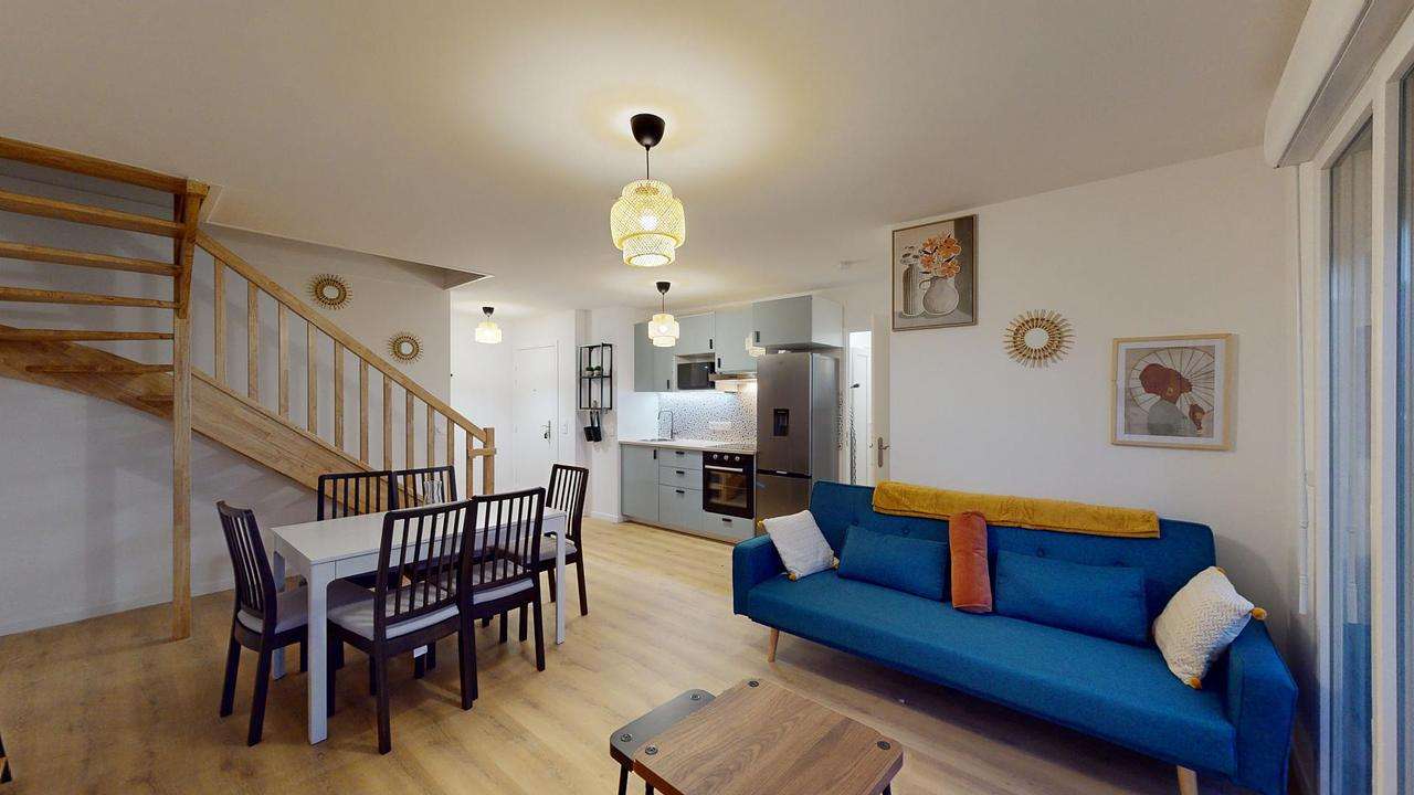 Ce superbe duplex meublé allie modernité et confort. Le séjour lumineux dispose d’un grand canapé, d’un espace TV et d’un coin repas convivial. La cuisine ouverte, élégante et entièrement équipée (four, plaques, réfrigérateur grande capacité), s’intègre parfaitement à l’espace de vie. Vous bénéficierez d'un balcon donnant une belle vue dégagée et sans aucun vis à vis.