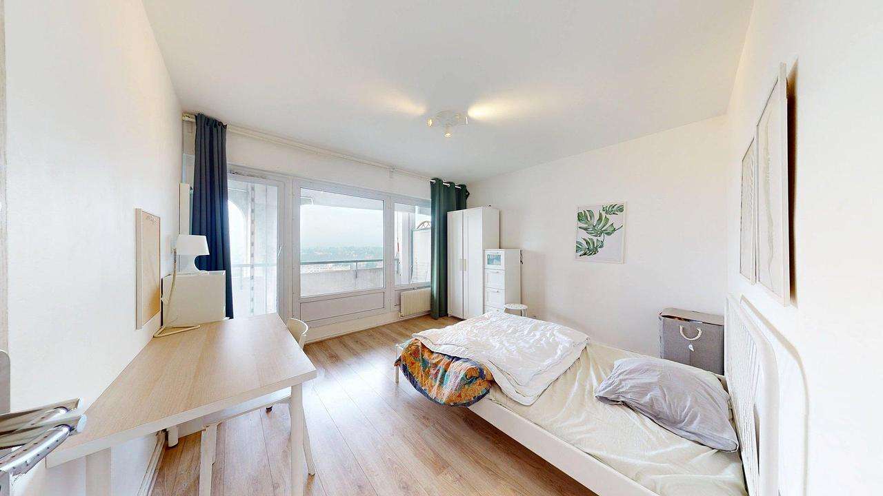 Le point fort de cette colocation est son balcon filant qui entoure l’ensemble de l’appartement. Toutes les chambres disposent d’un accès direct au balcon, ainsi que la pièce de vie et la cuisine. L’appartement offre ainsi une vue dégagée et un véritable confort au quotidien.