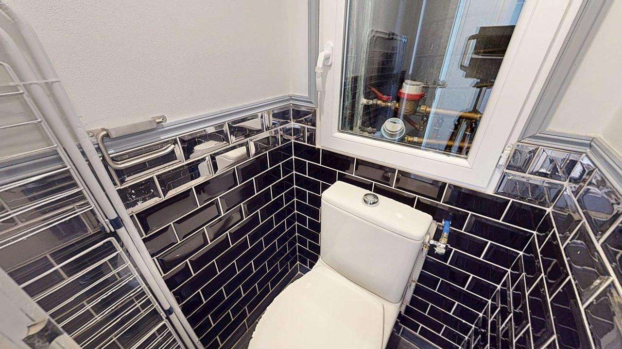 La première salle d'eau comporte une douche, un meuble vasque avec miroir, ainsi que des rangements. Les WC sont séparés.