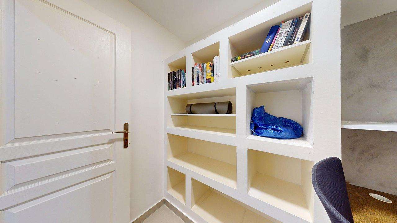Le logement se trouve au 5ᵉ étage avec ascenseur, dispose d’un gardien et d’un local à vélos.