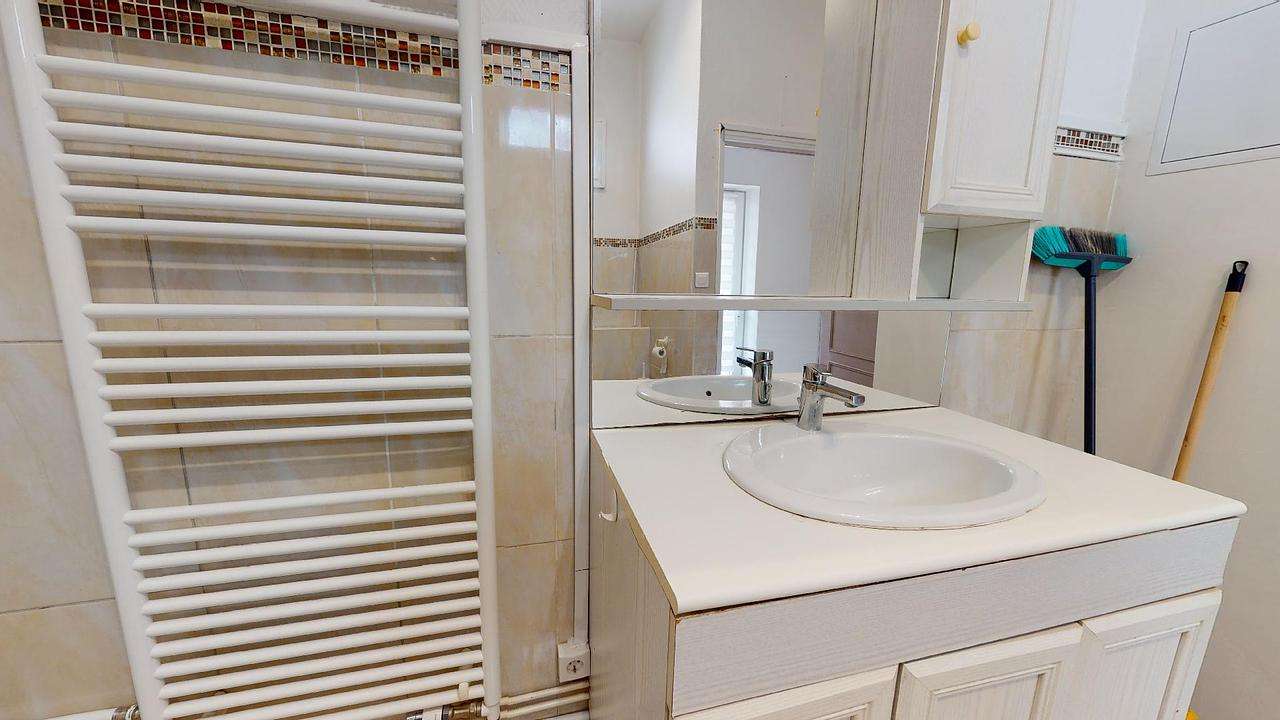 Une grande salle de bain avec douche, meuble vasque et WC vient compléter ce studio !