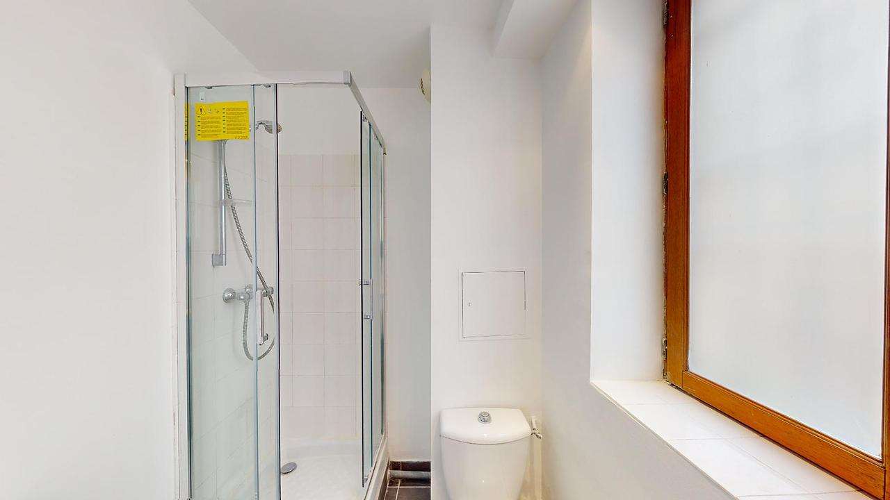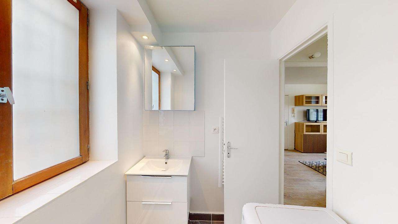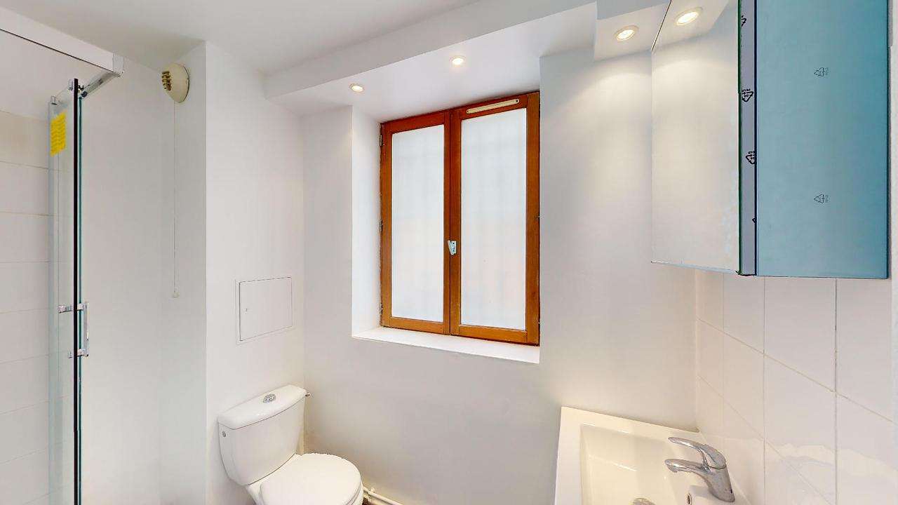 Pour compléter ce logement, une salle d'eau avec WC est équipée d'une douche, d'une machine à laver et d'un meuble vasque.