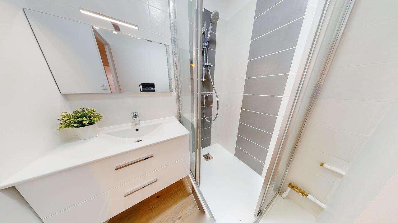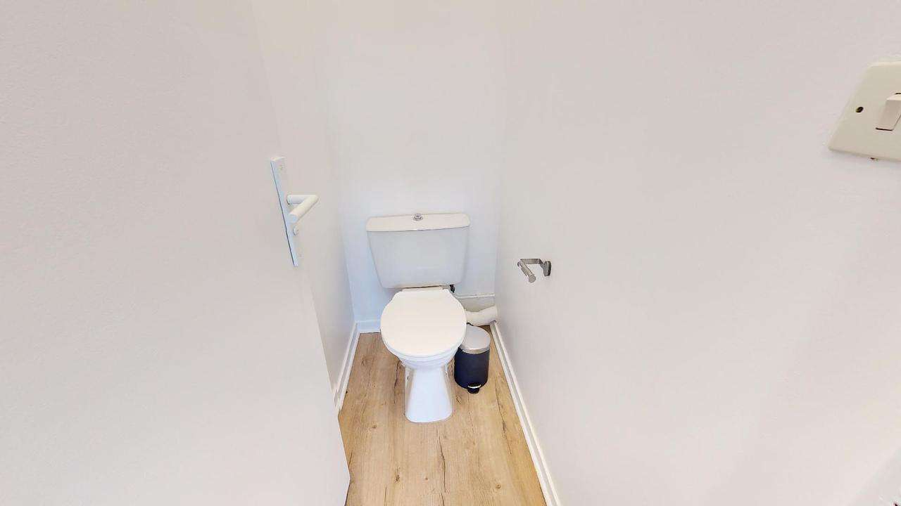 Cette colocation dispose de deux WC ainsi que de deux salles de bain. La première est équipée d'une cabine de douche, un meuble vasque et d'un miroir. La seconde dispose d'une grande baignoire, un meuble double vasque avec un grand miroir et d'une machine à laver.
