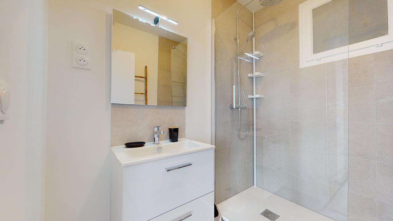 Salle de bain 2: La salle de bain 2 se compose d’une douche, d’un meuble vasque, d’un lave linge ainsi qu’un sèche-serviette.