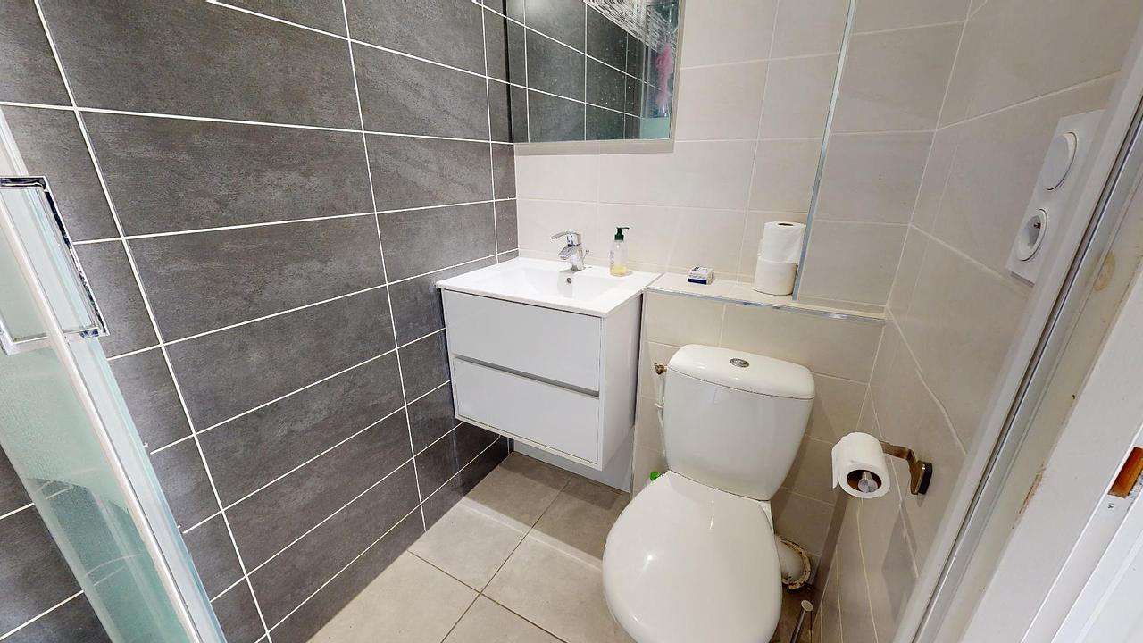 Les deux salles de bain sont identiques et disposent d’une douche, d’un meuble vasque et d’un WC. Il est d’usage que les locataires mettent en place une organisation qui sied à tous.
