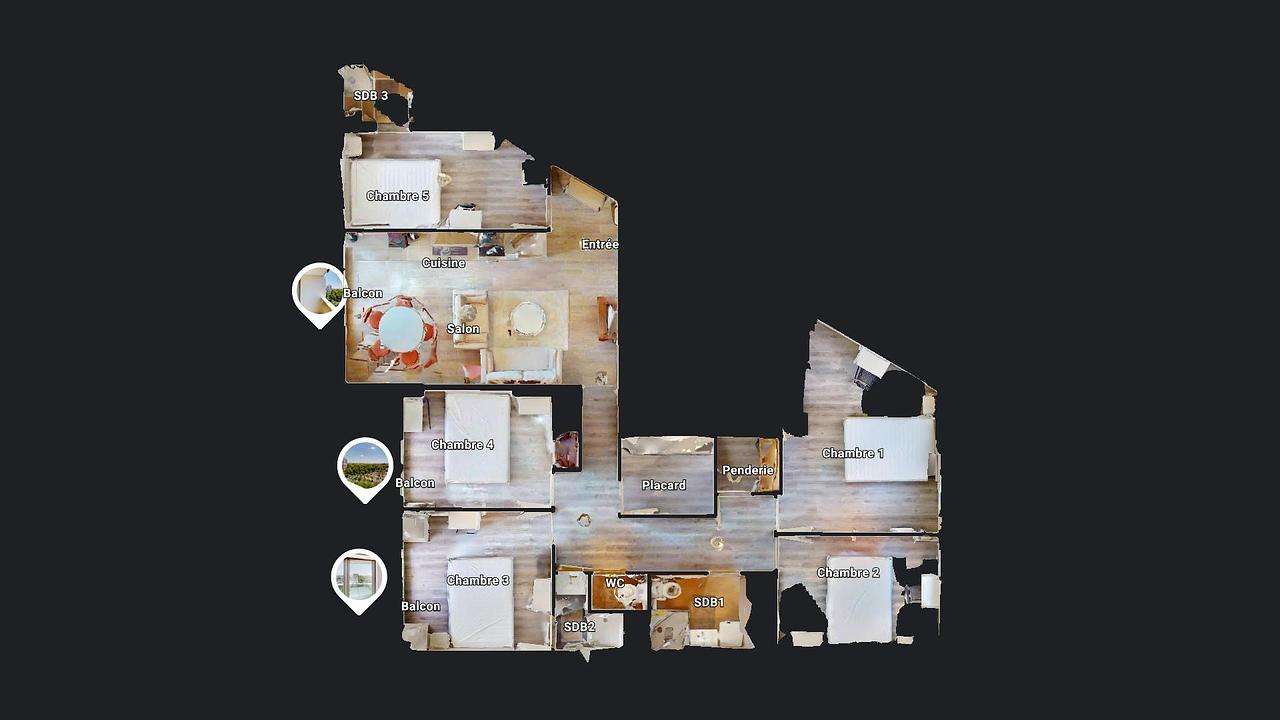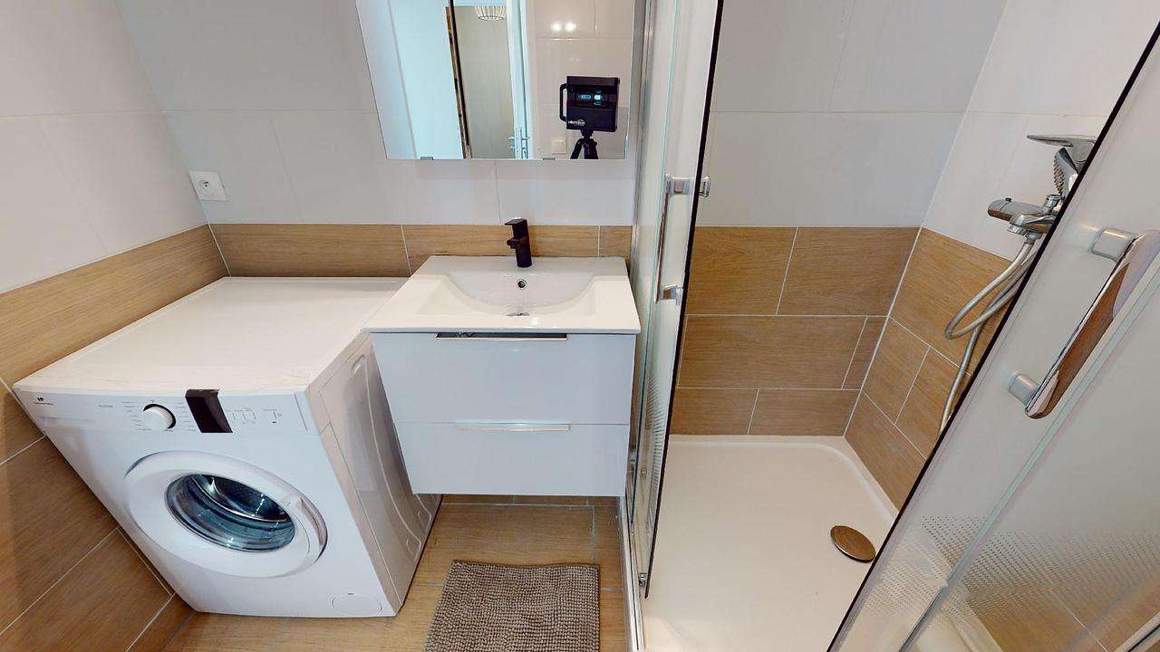 Ensuite, vous disposerez d’un WC indépendant, et d’une salle de bain commune munie de son meuble vasque, de sa machine à laver, et de sa douche. Les deux autres salles de bains sont privative et attribuée aux chambres 3 et 5. Chaque chambre dispose d’un lit double, d’un bureau, d’une table basse et d’un placard de rangement.