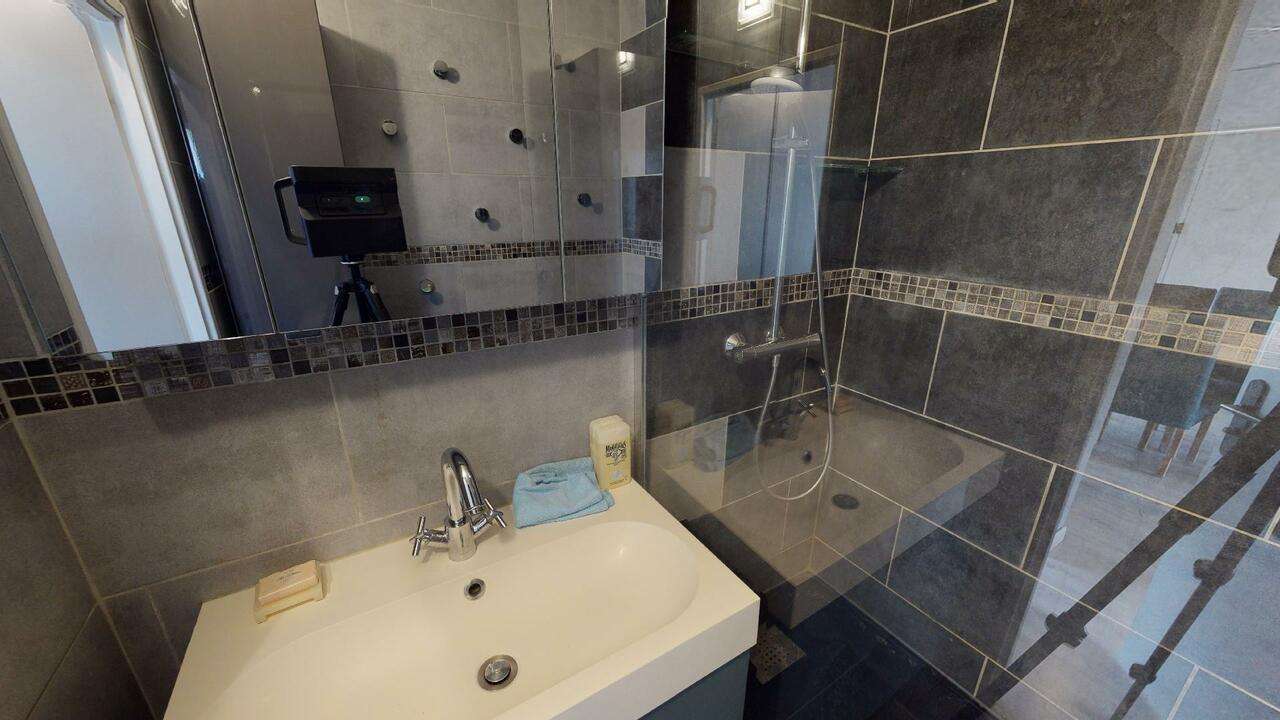La salle de bain composée d'une grande douche, d'un meuble vasque et les WC séparés viennent compléter ce logement.