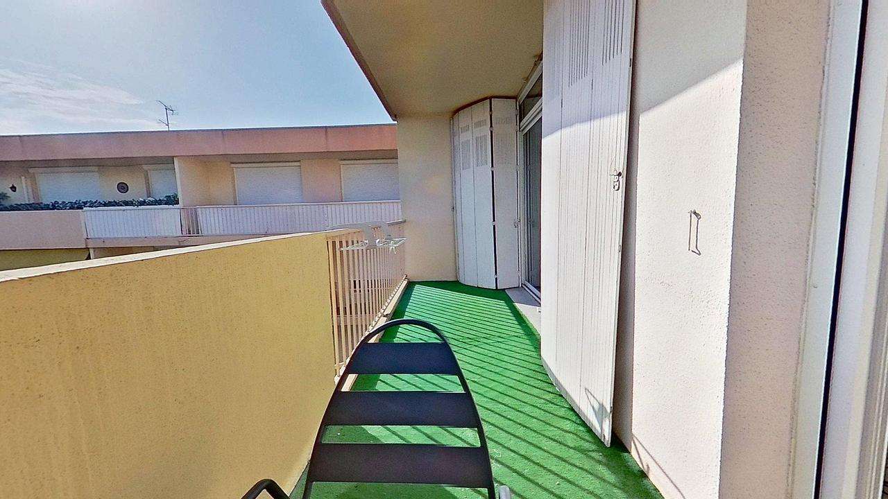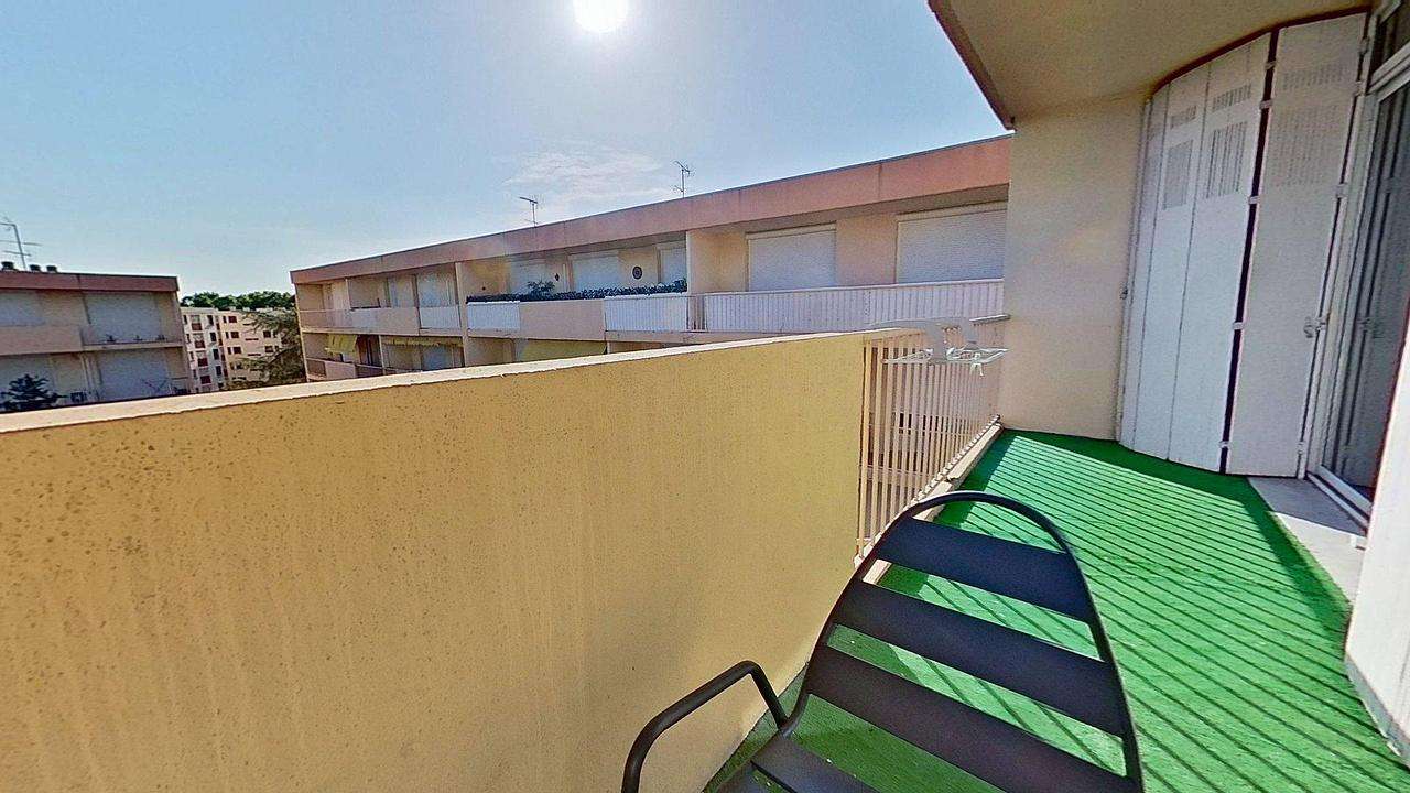 La pièce de vie est meublée avec un canapé, une table basse, un meuble TV avec TV, une table pouvant accueillir 4 personnes. On y trouve un grand balcon traversant deux des chambres, il est meublé d'une table, de deux chaises et donne sur une vue dégagée.