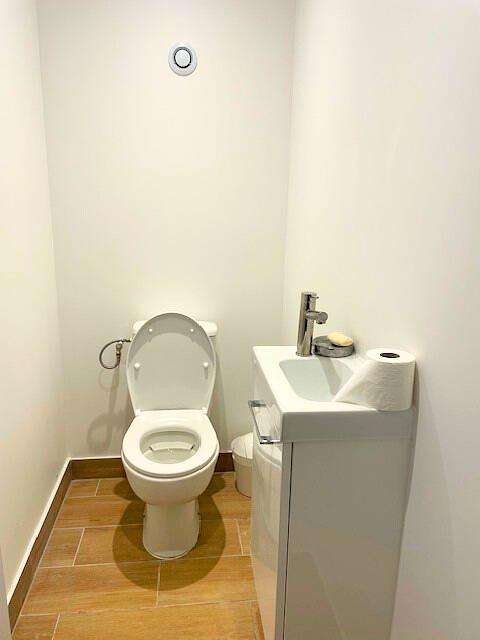 Ce bien spacieux et moderne se compose d'une entrée accueillante donnant sur un salon lumineux. La cuisine ouverte offre un espace moderne et fonctionnel. La baie vitrée du séjour permet d’accéder directement au jardin, idéal pour profiter de moments en extérieur.
