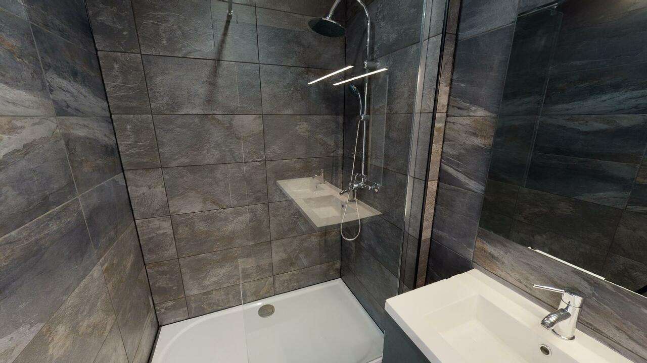 Salle de bain avec une grande douche