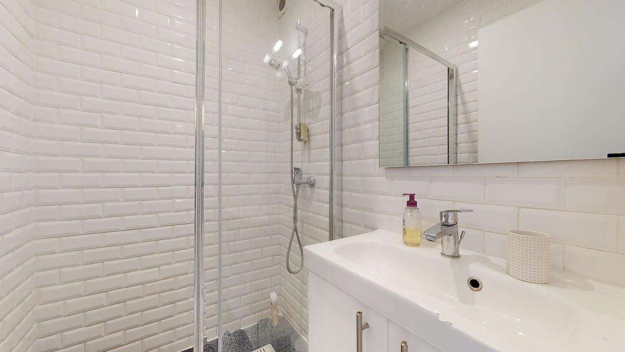 Cette maison de ville se compose de deux niveaux. Au rez-de-chaussée se trouve deux chambres, une cuisine très bien équipée (four, micro-ondes, lave-vaisselle, plaques de cuisson, hotte, frigidaires, lave-linge, rangements, etc.) et s’ouvre sur une grande table à manger accompagnée de cinq chaises. Les trois salles de bain de la maison sont toutes équipée d’un meuble vasque et d’une douche.