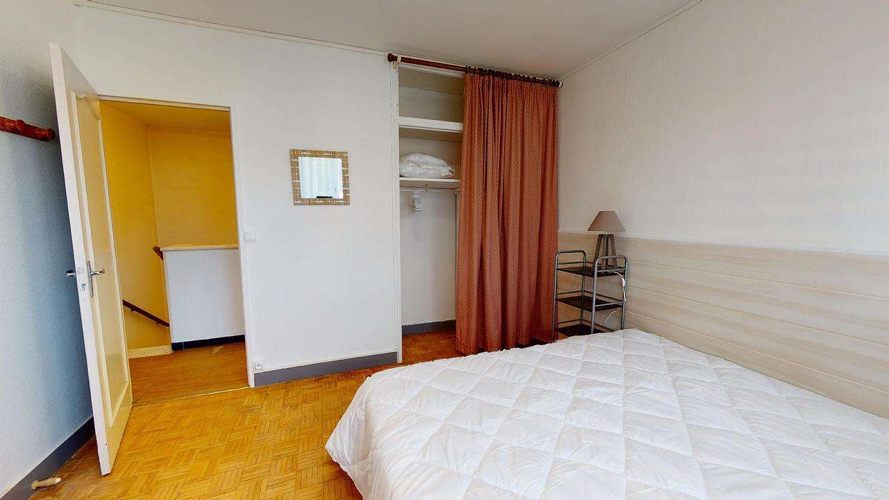 La chambre 2 se situe à l'étage. Elle dispose d'un lit double et d'un grand placard. Un bureau lui est associé dans la pièce attenante pour bien séparer l'espace travail, de l'espace sommeil. La grande fenêtre explique la belle lumière naturelle de la pièce.