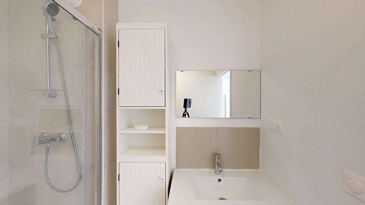 Les deux salles d’eau disposent d’une douche, d’un meuble vasque avec miroir et de rangements. Deux WC sont disponibles : l’un dans la seconde salle de bain et l’autre séparé, pour plus de confort.
