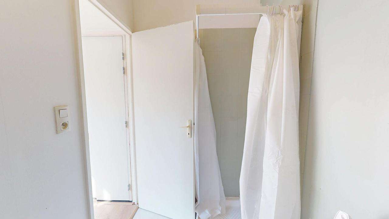 Ce studio lumineux s'ouvre sur une pièce de vie facilement aménageable avec une bibliothèque et un placard mural. La cuisine dispose de plaques de cuisson, d'un évier ainsi qu'un meuble de rangement.
