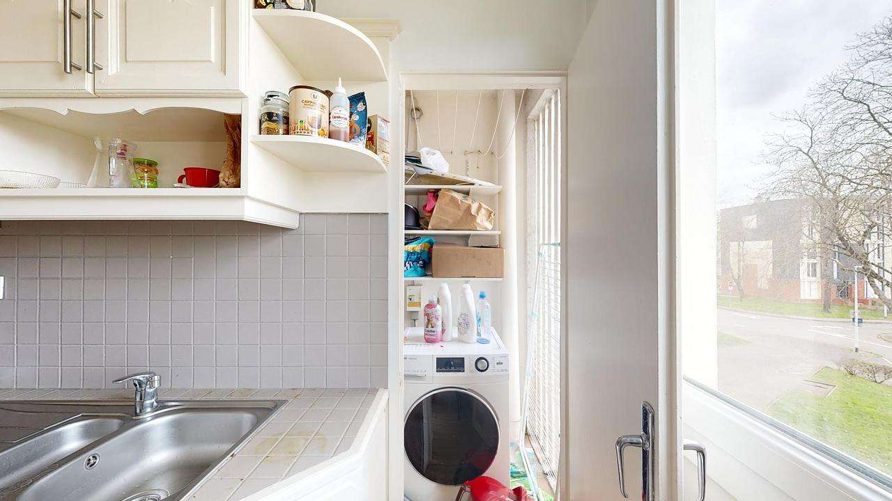 L'appartement est composé, d'une entrée (équipée d'une console), d'un séjour (équipé d'un canapé, de deux fauteuils, de deux chaises, d'une table basse, d'une télévision et de rangements), d'une cuisine (équipée d'un réfrigérateur, d'un four, d'un four à micro-ondes, de plaques de cuisson, d'une hotte, d'un lave-vaisselle, d'un évier, d'une bouilloire, d'une machine à expresso, d'une table à manger, de quatre chaises et de rangements), d'un espace buanderie (équipé d'un lave-linge) et d'une salle de bain (équipée d'une douche et d'un meuble vasque).