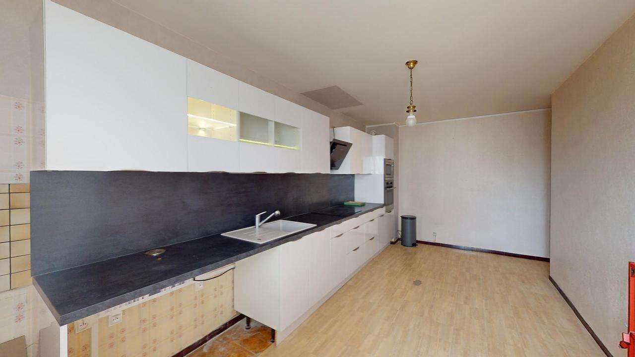 Cet appartement de 5 pièces est composé d'un salon avec canapé, de quatre chambres, d'une cuisine équipée d'un four, d'un meuble de rangement ainsi que d'une plaque de cuisson et de deux salles de bains.
