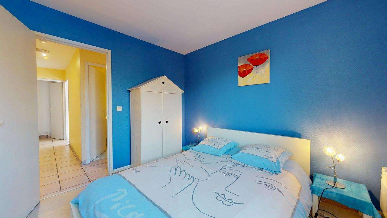 L’appartement s’ouvre sur un vaste séjour particulièrement lumineux, aménagé avec un canapé en cuir, deux fauteuils, une télévision, une Freebox et une connexion wifi haut débit, ainsi qu’un canapé-lit offrant deux couchages supplémentaires. La pièce de vie accueille également une table à manger pouvant recevoir jusqu’à six personnes.