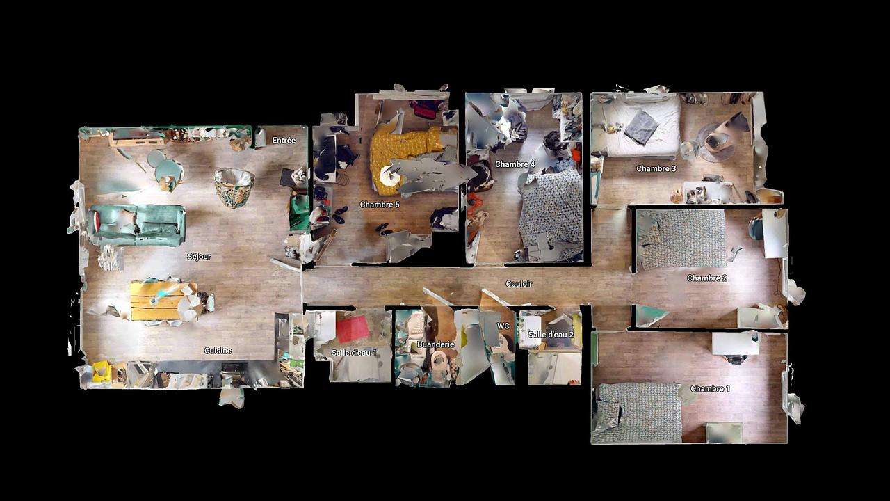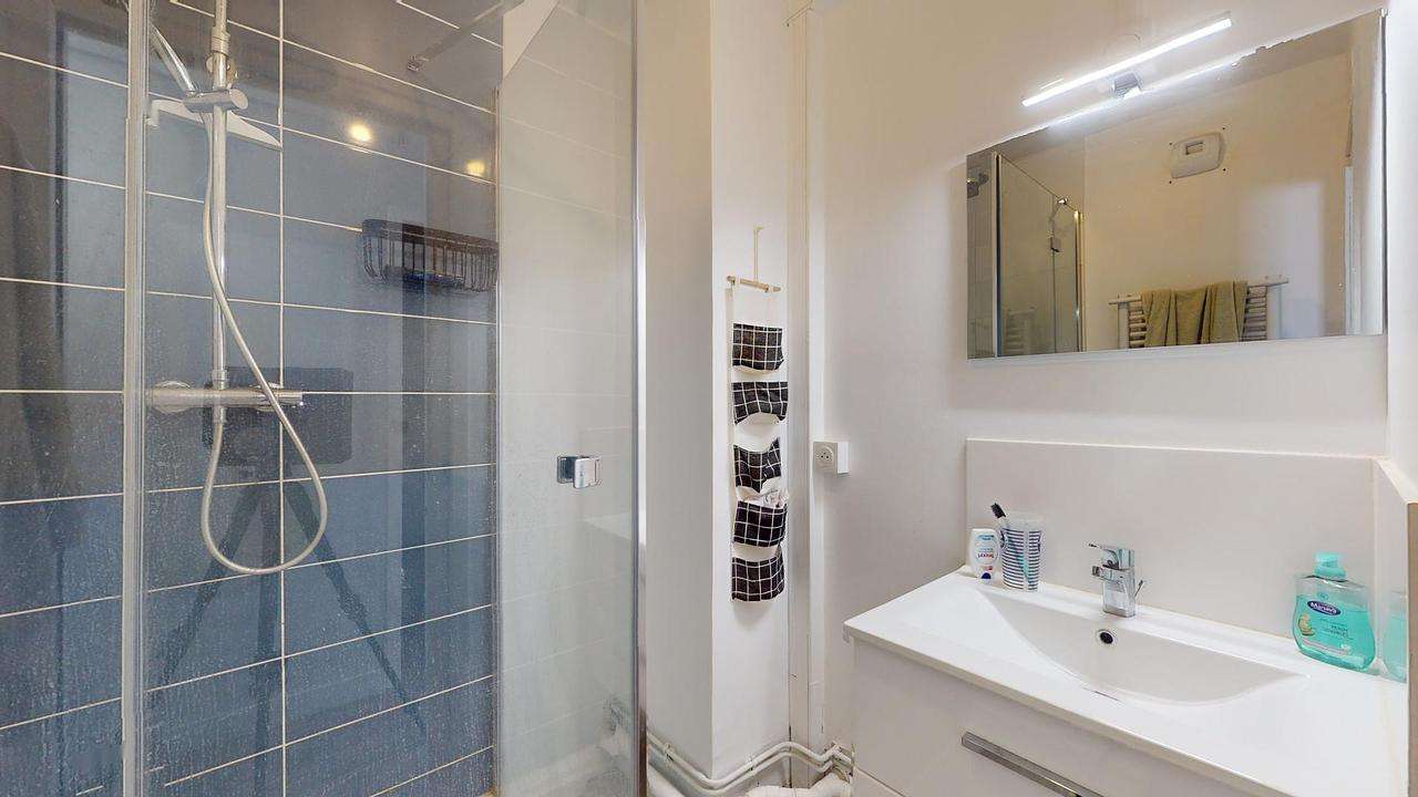 Il y a deux salles d'eau avec douche et sèche-serviette. Les WC sont séparés. Quatre autres chambres composent cet appartement.
