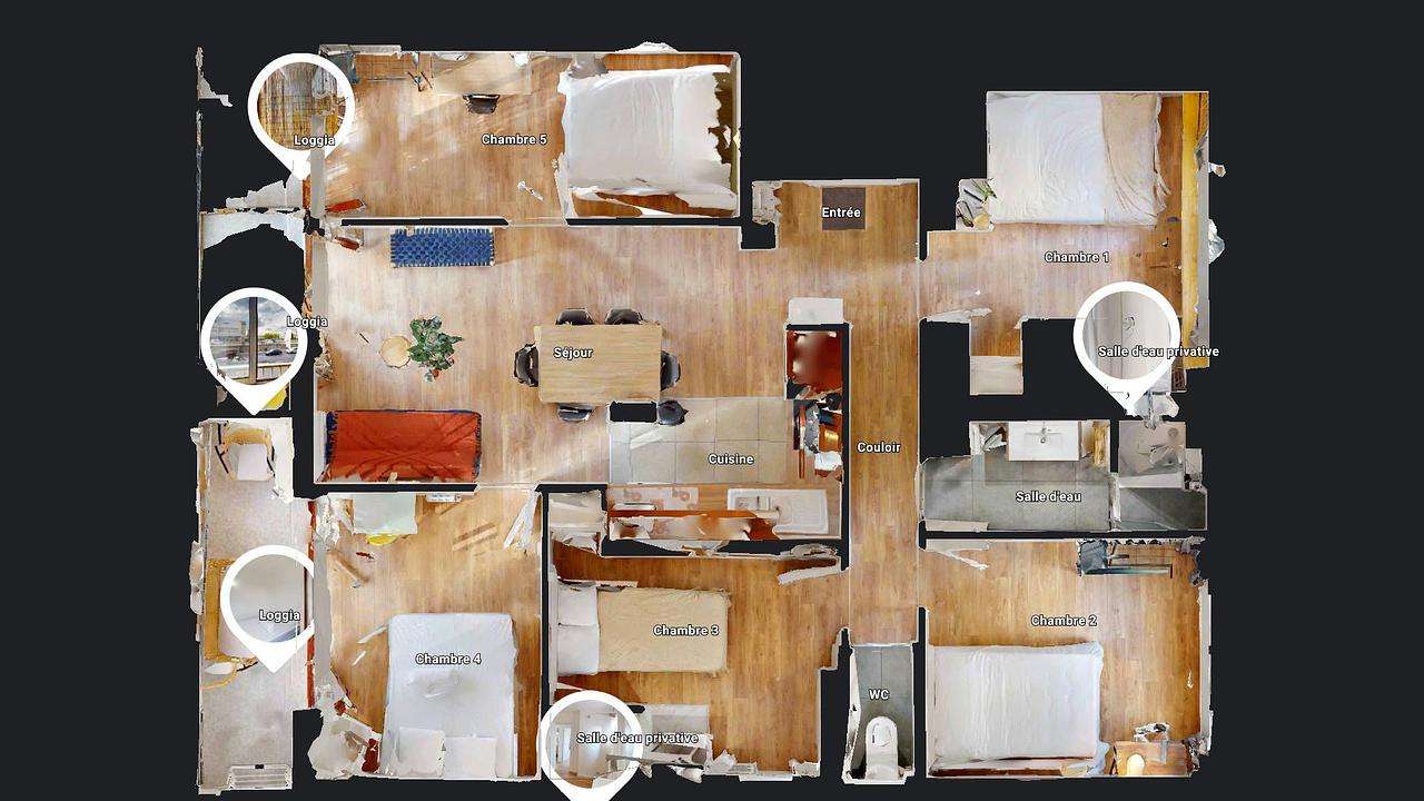 De plus, trois loggias sont présentes, dont deux sont privatives et attribuées aux chambres 4 et 5.