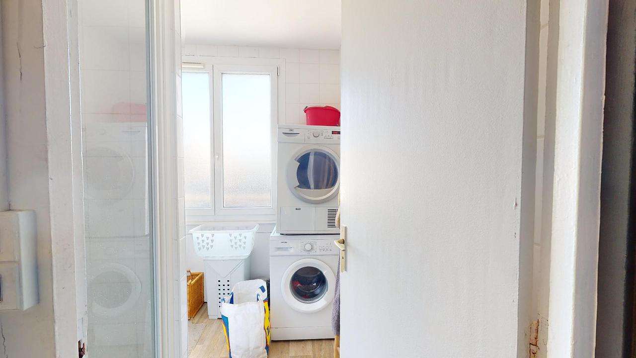 Une salle d’eau est à la disposition de l’ensemble de la colocation. Elle comprend un meuble vasque, une douche, une machine à laver et un sèche linge. Il convient aux locataires de convenir d’une organisation qui sied à tous.