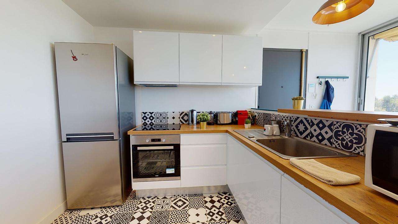 On entre dans la colocation par un couloir qui dessert les chambres de l'appartement ainsi que la salle de bain et le WC séparé. En face, une gigantesque pièce de vie ouverte sur une terrasse ensoleillée ! Ce grand espace permet de profiter d'un salon agréable et ventilé, d'une grande table à manger permettant de recevoir de nombreux convives et de profiter d'instants entre colocataires, ainsi que d'une cuisine entièrement équipée tant en électroménager (four, lave-vaisselle, lave-linge, frigo, etc...) que d'équipements (nombreux placards comprenant tout le nécessaire pour prendre et préparer de délicieux repas !)