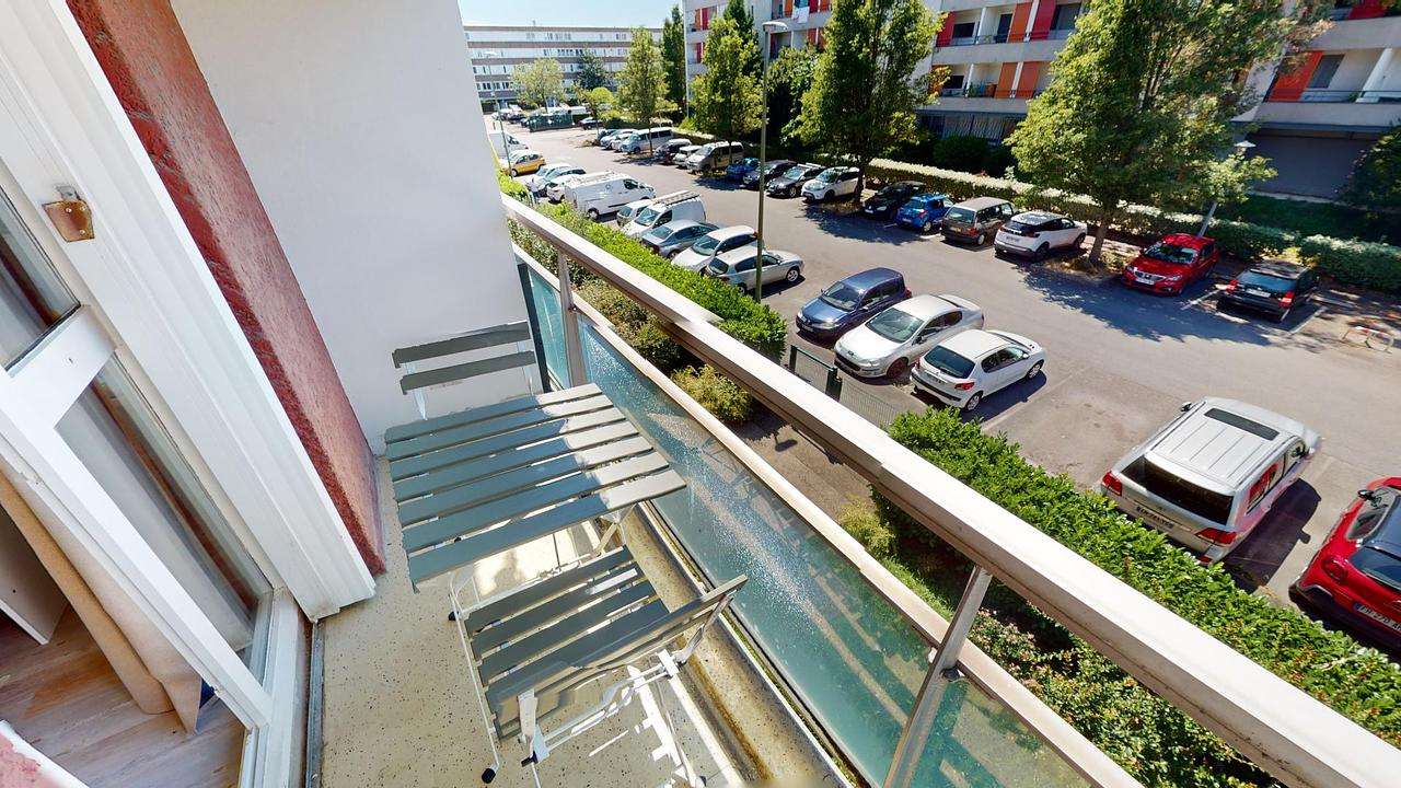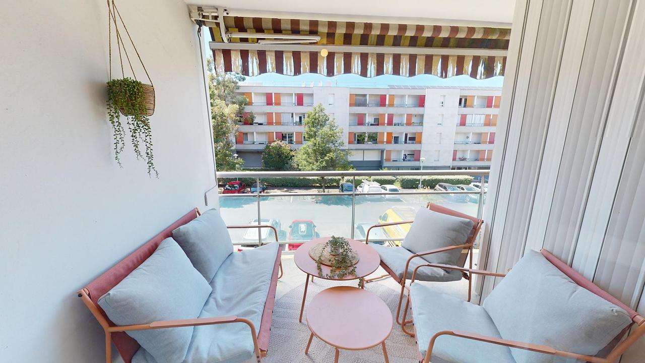 Les espaces de vie sont baignés de lumière naturelle grâce à une grande porte-fenêtre qui s'ouvre sur un balcon, vous offrant un coin extérieur agréable et ensoleillé.