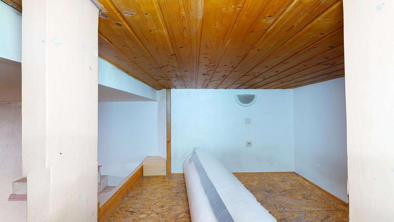Une mezzanine avec le coin nuit surplombe la pièce de vie.