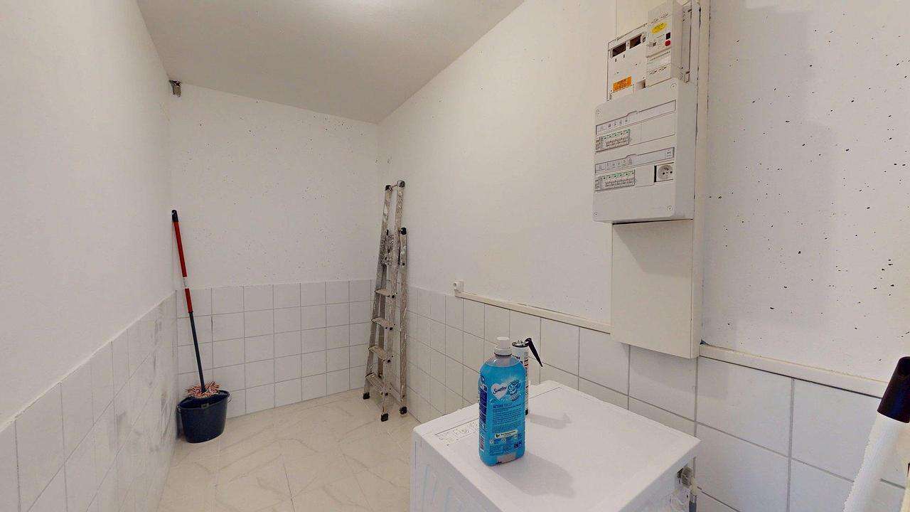Une buanderie équipée d’un lave-linge facilite le quotidien des colocataires.