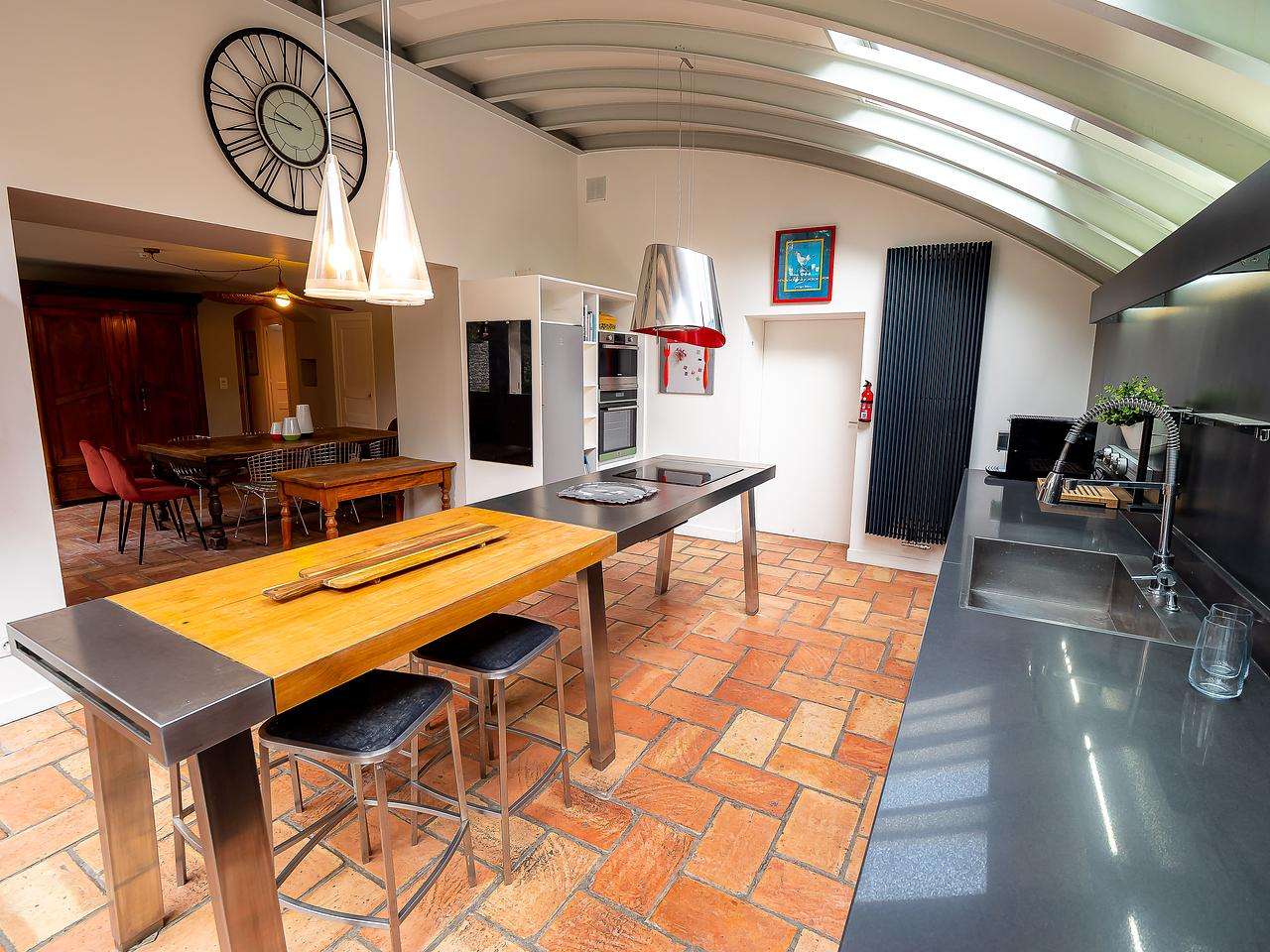 La cuisine est meublée d'un meuble de rangement. Elle comporte aussi un four, un lave-vaisselle, une machine à café, un micro-ondes et une plaque de cuisson.