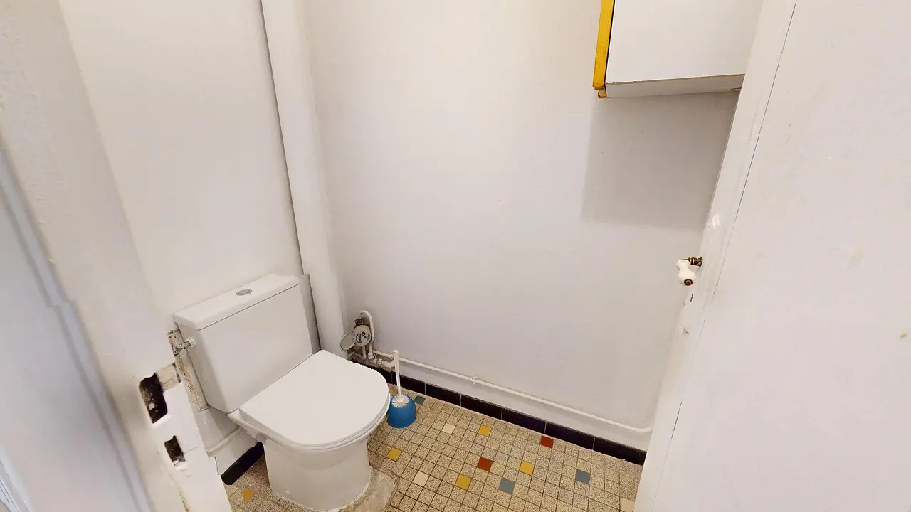 La pièce de vie est conviviale et bien agencée, meublée avec un canapé, deux fauteuils, une table à manger pour 4 personnes et une télévision. Elle donne accès à une grande loggia, qui apporte de la lumière naturelle et offre un espace de rangement supplémentaire, idéal pour la colocation. La pièce dispose également de plusieurs réfrigérateurs, pratique pour que chaque colocataire ait son espace de stockage.