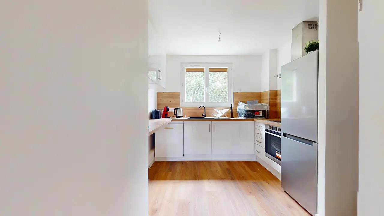 Cette colocation est idéalement située, à deux pas des commerces (supermarché à 500m) et des espaces de loisirs.