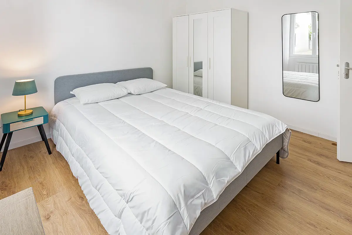 La chambre est située au rez de chaussée d’une maison de 180m2 entièrement refaite à neuf et meublée en 2023, qui dispose également d’un jardin de 450m2. La maison comporte 8 chambres.
