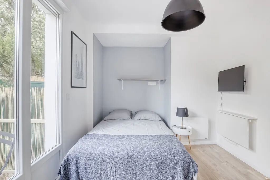 🛏️ Des chambres confortables et fonctionnellesChaque chambre a été pensée pour votre intimité et votre confort. Elles sont toutes équipées d’un lit double, d’un placard de rangement, d’un bureau, d’une télévision. Vous disposerez ainsi d’un espace cosy, pratique et agréable, pour vous sentir parfaitement chez vous.