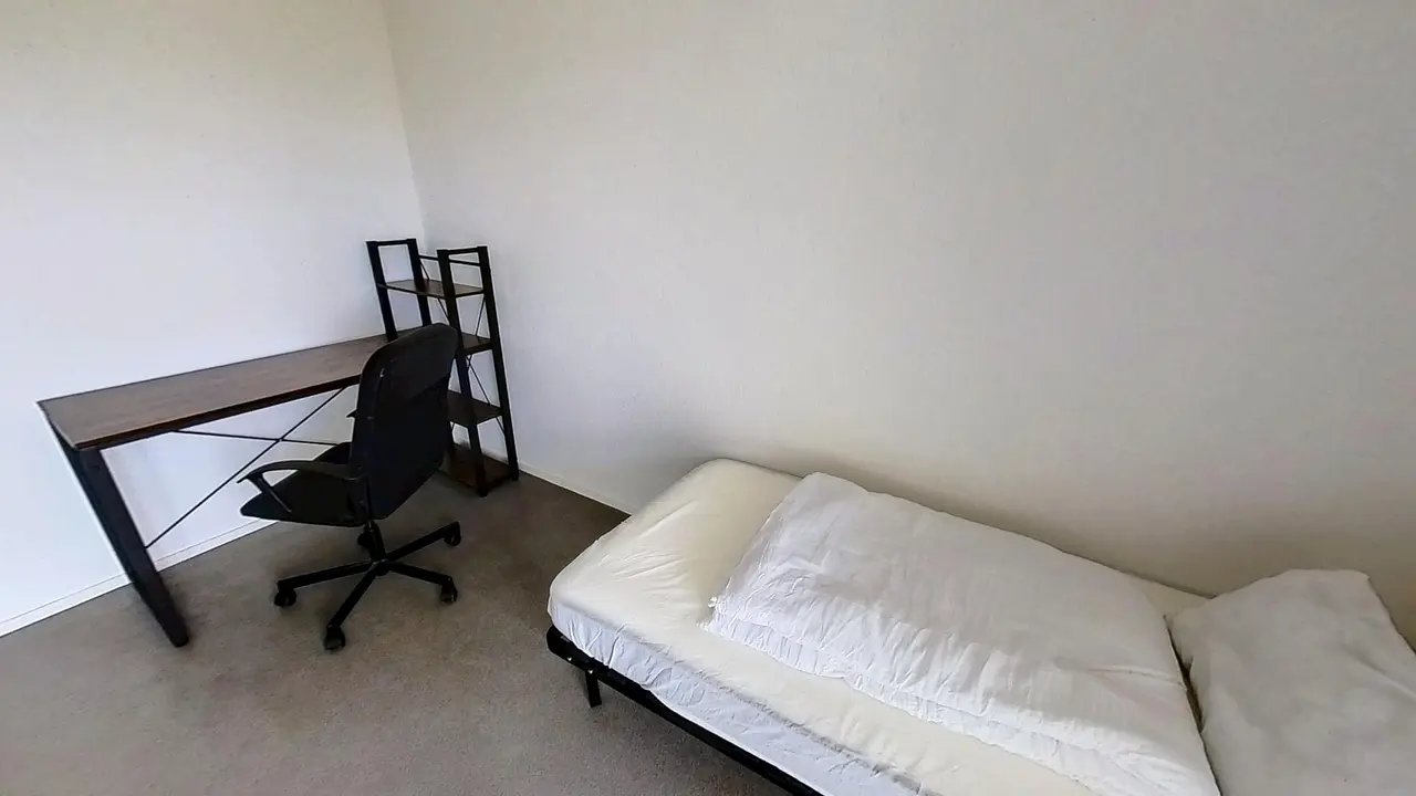 Cette chambre dispose d'un lit simple, d'un bureau avec une chaise, de deux meubles de rangements, d'un canapé ainsi que de tables basses. Cette chambre a un accès direct sur un balcon vers le sud, partagé avec la chambre 2.