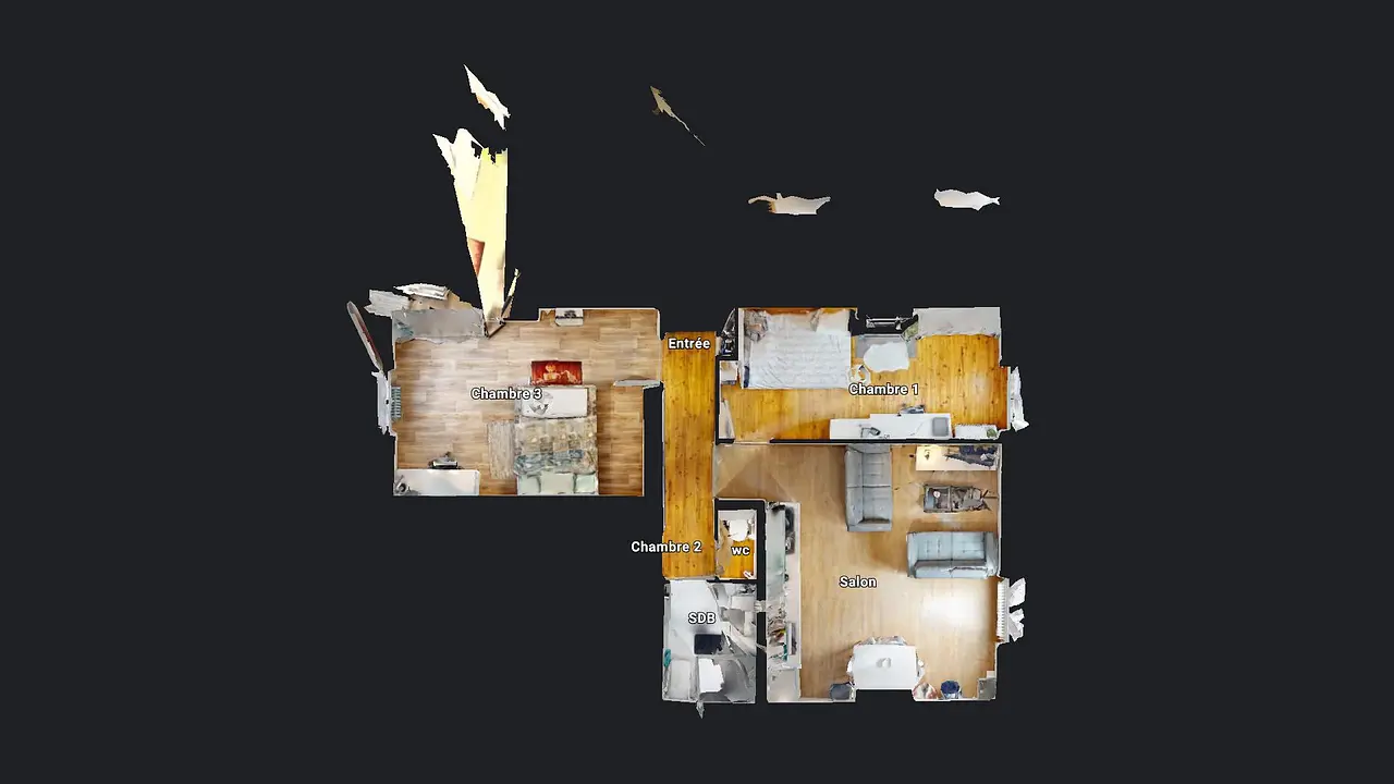 L'appartement de 3 pièces est composé d'un salon équipé d'un canapé ainsi que d'une télévision, de deux chambres, d'une cuisine et d'une salle de bains avec douche.
