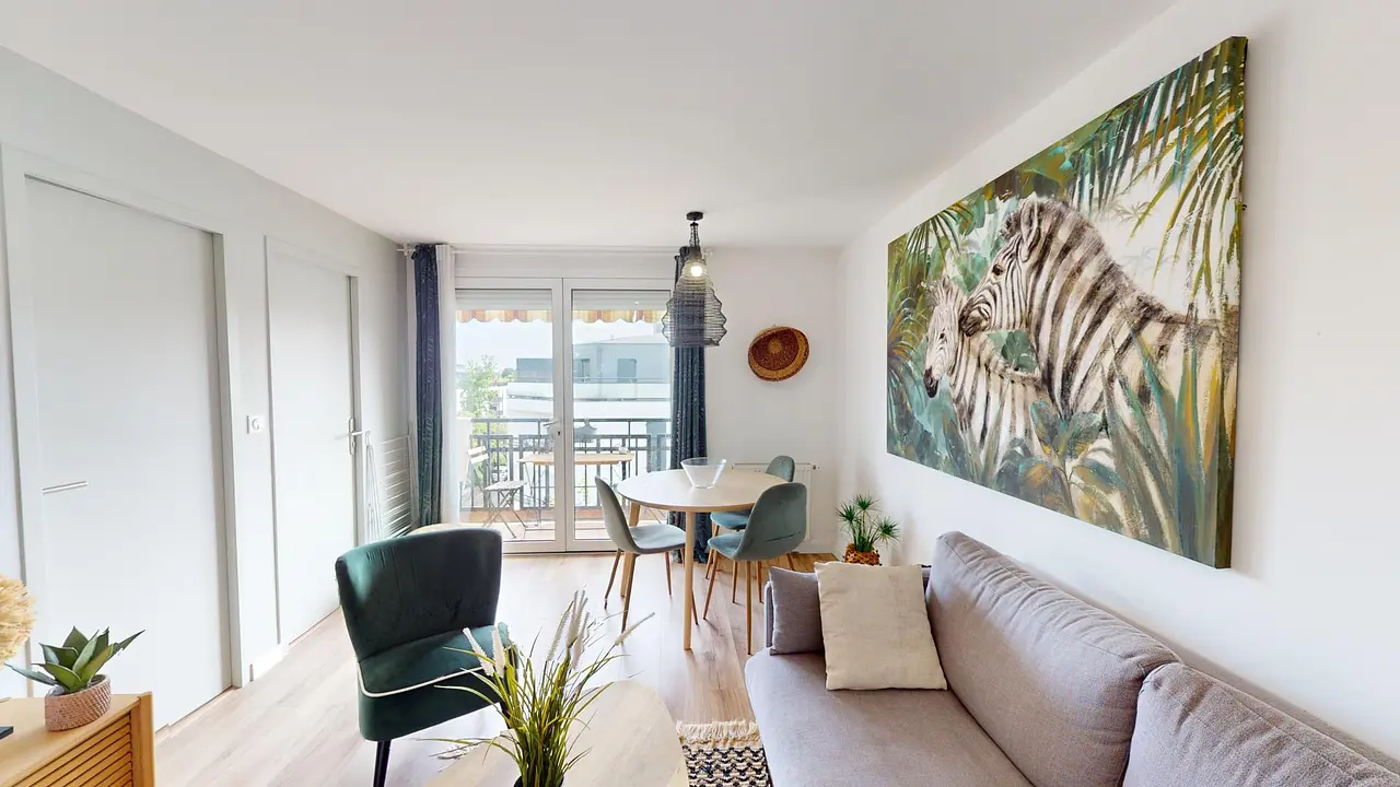 L'appartement est idéalement situé dans un quartier calme de Mérignac, à proximité des commerces (supermarché à 500m) et des espaces de loisirs (piscine à 10 minutes à pied).