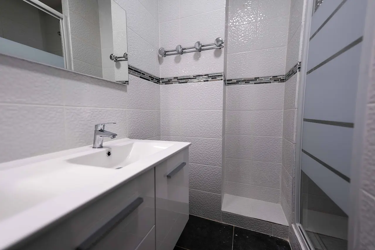 Deux salles de bain une avec douche et une avec baignoire ainsi que des WC séparés