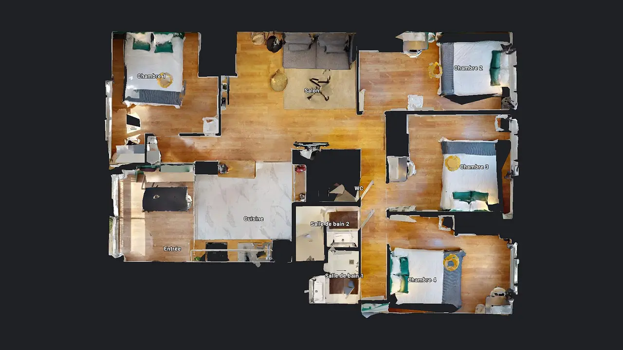 Cet appartement de 5 pièces comporte trois autres chambres, une cuisine et une salle de bains.