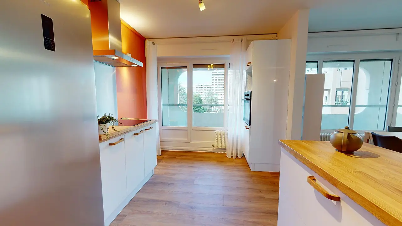 Venez profiter de l’essor du 9e arrondissement de Lyon dans cette grande et belle colocation meublée de 116 m2 située au 3e étage de la résidence des 2 amants au 47 rue du professeur Patel. Elle se trouve à 15 minutes à pied du métro D (arrêt Gorge de Loup), accessible également par plusieurs des 10 lignes de bus qui croisent pavillons à 400 m de l’appartement (arrêt Montribould).