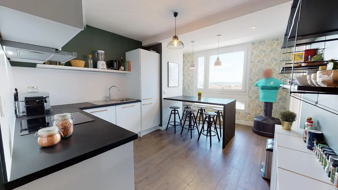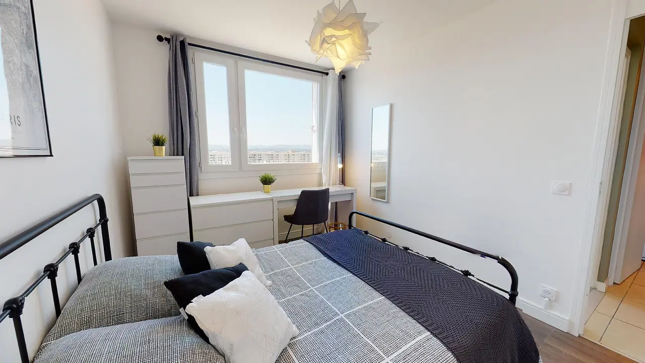 Superbe opportunité avec cette colocation à Lyon: 80 m² pour 4 chambres, un aménagement haut de gamme et un spot bien desservi à côté du T4 et T6. L’appartement, entièrement meublé, se trouve au 12e étage de la résidence
