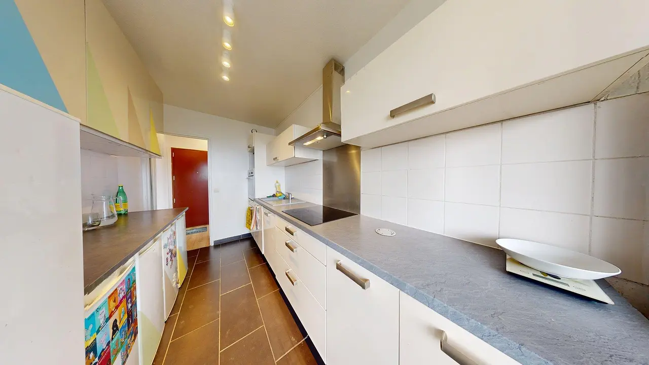 Le point fort de cette colocation est son balcon filant qui entoure l’ensemble de l’appartement. Toutes les chambres disposent d’un accès direct au balcon, ainsi que la pièce de vie et la cuisine. L’appartement offre ainsi une vue dégagée et un véritable confort au quotidien.
