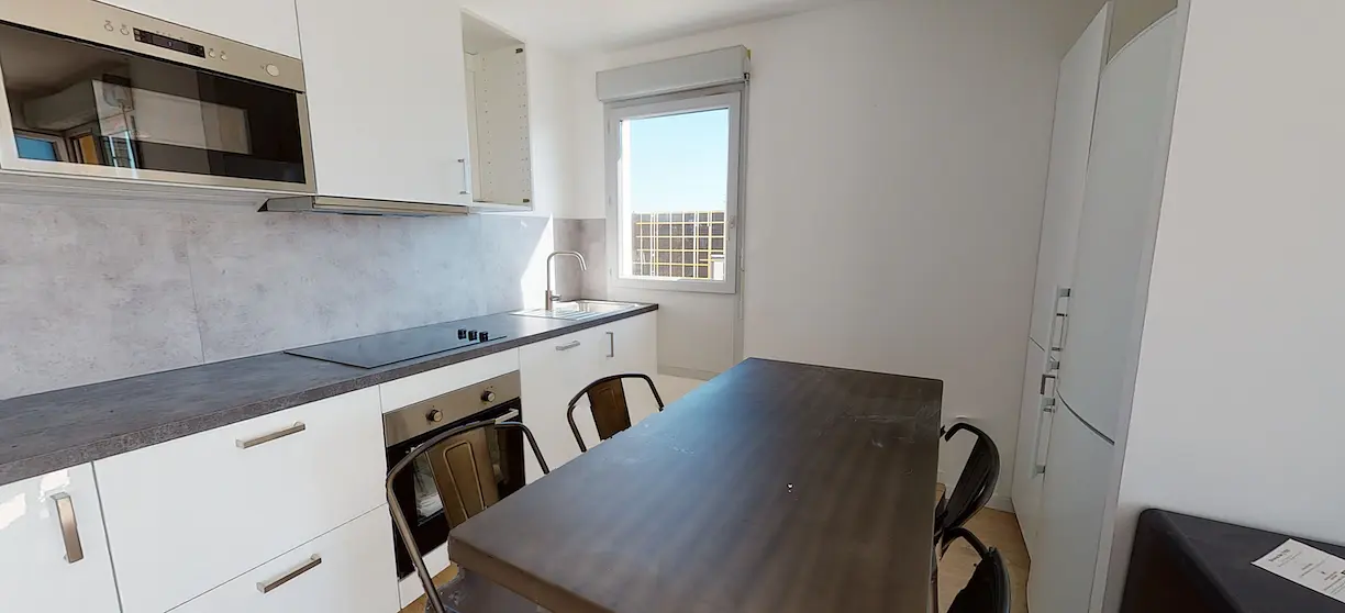 Grande colocation de 3 chambres de 68m2 est située au dans le 8ème arrondissement de Lyon au 4 Place Julien Duret.L’appartement est très moderne et lumineux grâce aux grandes fenêtres présentes dans la pièce de vie.