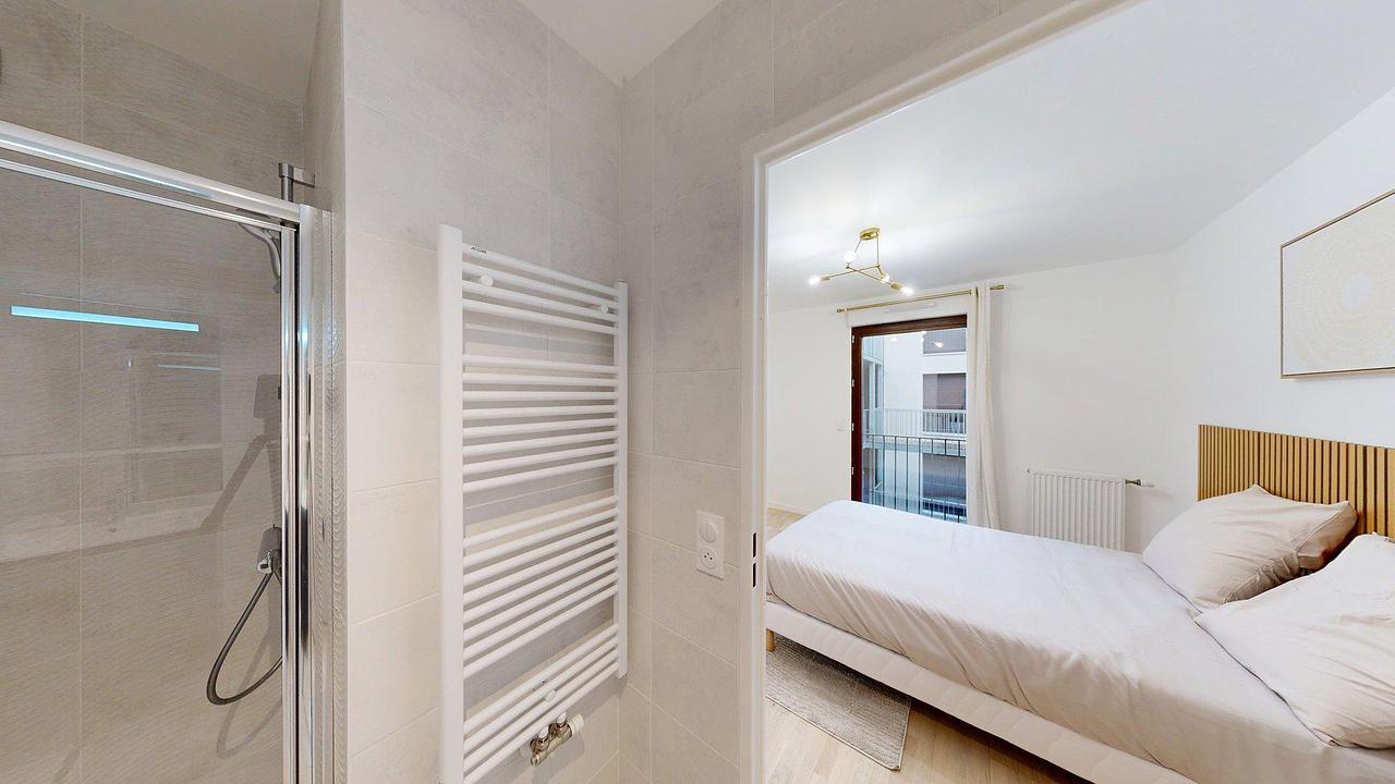 Le logement se compose de quatre chambres spacieuses, toutes meublées avec soin. L’une d’entre elles bénéficie du privilège d'une salle de bain privative, offrant une indépendance totale. Les trois autres chambres se partagent une seconde salle de bain moderne et fonctionnelle. Chaque pièce est optimisée pour le repos et la productivité, intégrant un lit confortable, un espace bureau dédié et un dressing généreux. Situé à proximité immédiate des transports et des commerces de Villejuif, cet appartement est le lieu idéal pour ceux qui recherchent le prestige du neuf sans aucun compromis.