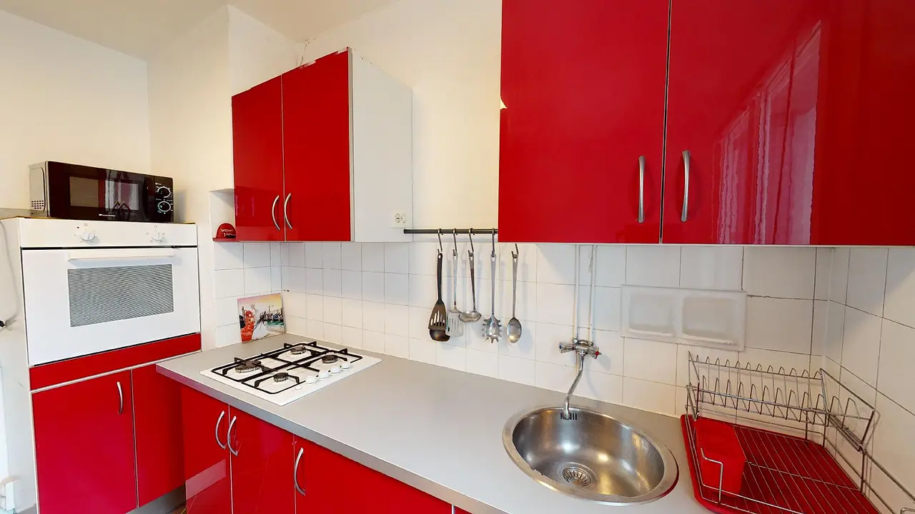 Ce bien dispose d’une grande entrée avec placard et meuble bas d’entrée, d’une cuisine équipée (Four, micro-onde, hotte, rangements, plaques de cuisson au gaz, table à manger et un grand frigidaire), et d’une salle de bain munie de son meuble vasque, de sa douche à l’italienne et d’une machine à laver. Enfin, 2 chambres spacieuses et lumineuses vous attendent !
