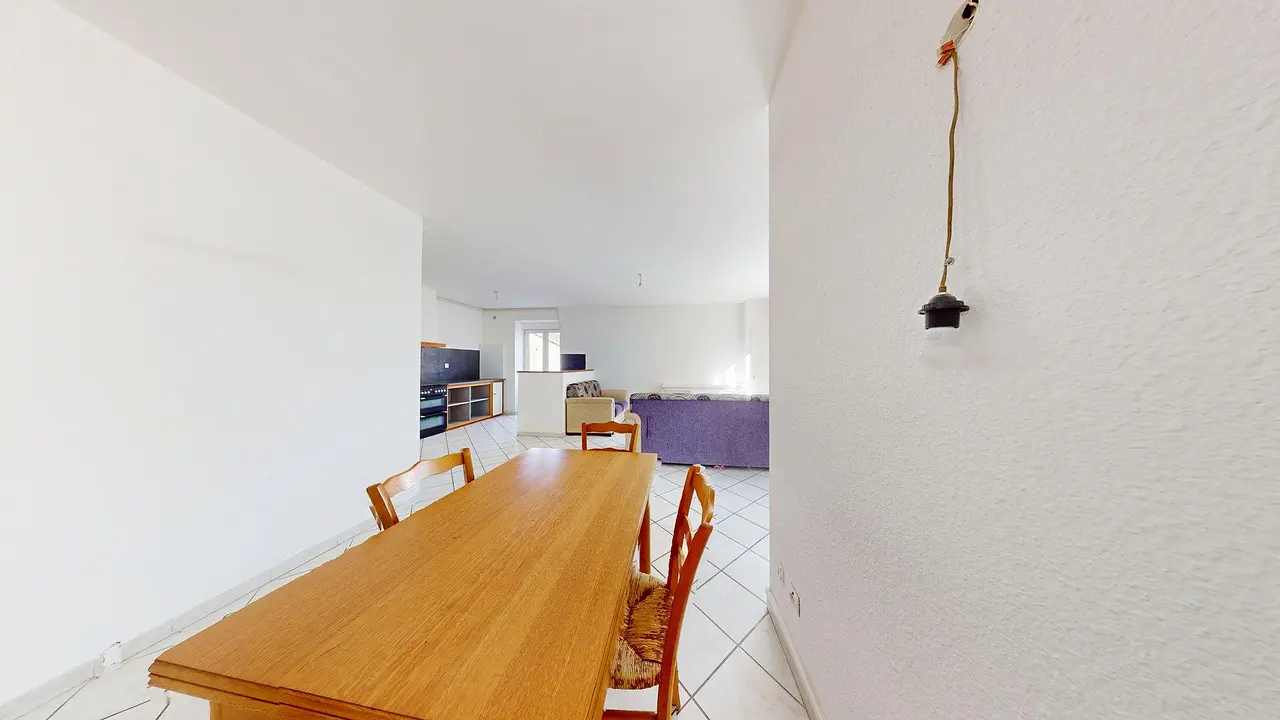 Cette maison spacieuse se distingue par son agencement fonctionnel et ses volumes généreux, parfaits pour une vie de famille. La pièce de vie principale constitue un espace convivial et lumineux avec 2 canapé et un meuble télé, idéal pour vos moments de partage. La cuisine américaine est déjà équipée avec des plaques de cuisson, un four et un réfrigérateur pour faciliter votre emménagement. Cet espace de vie est complété par un coin repas comprenant une table et des chaises.